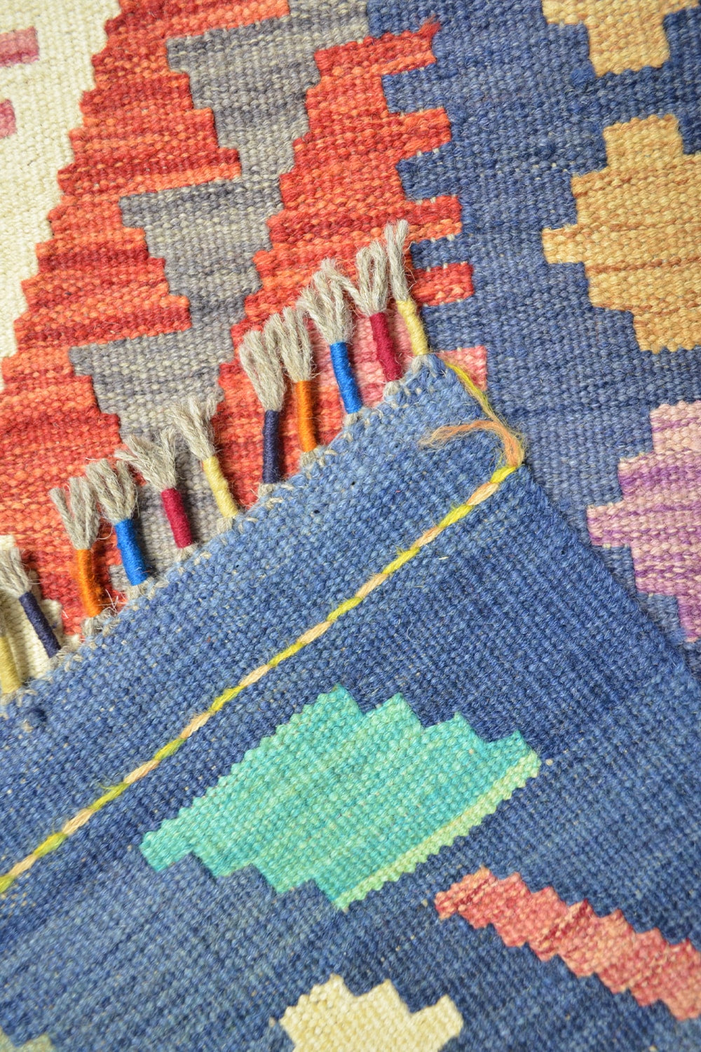 Afgan kilimleri, düz dokuma teknikleri ve geometrik desenleriyle bilinir. Renklerin cesur kullanımı, hem otantik hem de modern dekorasyonlarda dikkat çekici bir vurgu yaratır. El işçiliğinin doğal izlerini taşıyan bu kilim, her ilmeğinde ustalarının emeğini yansıtır.
