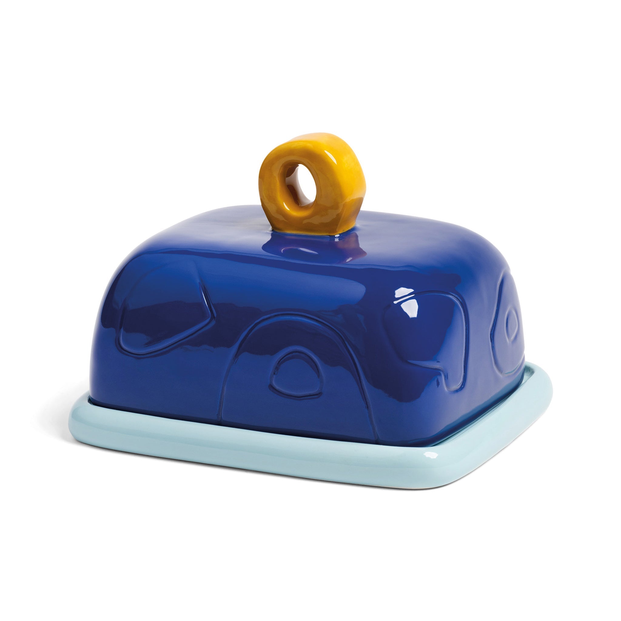 Bu tereyağı kabı ile yemek masanızı şıklaştırın! Zıt renkler ve soyut şekillerle tasarlanmıştır. Tereyağı kabı, taze tereyağınızı serin tutarken masanıza sanatsal bir dokunuş katacak.
