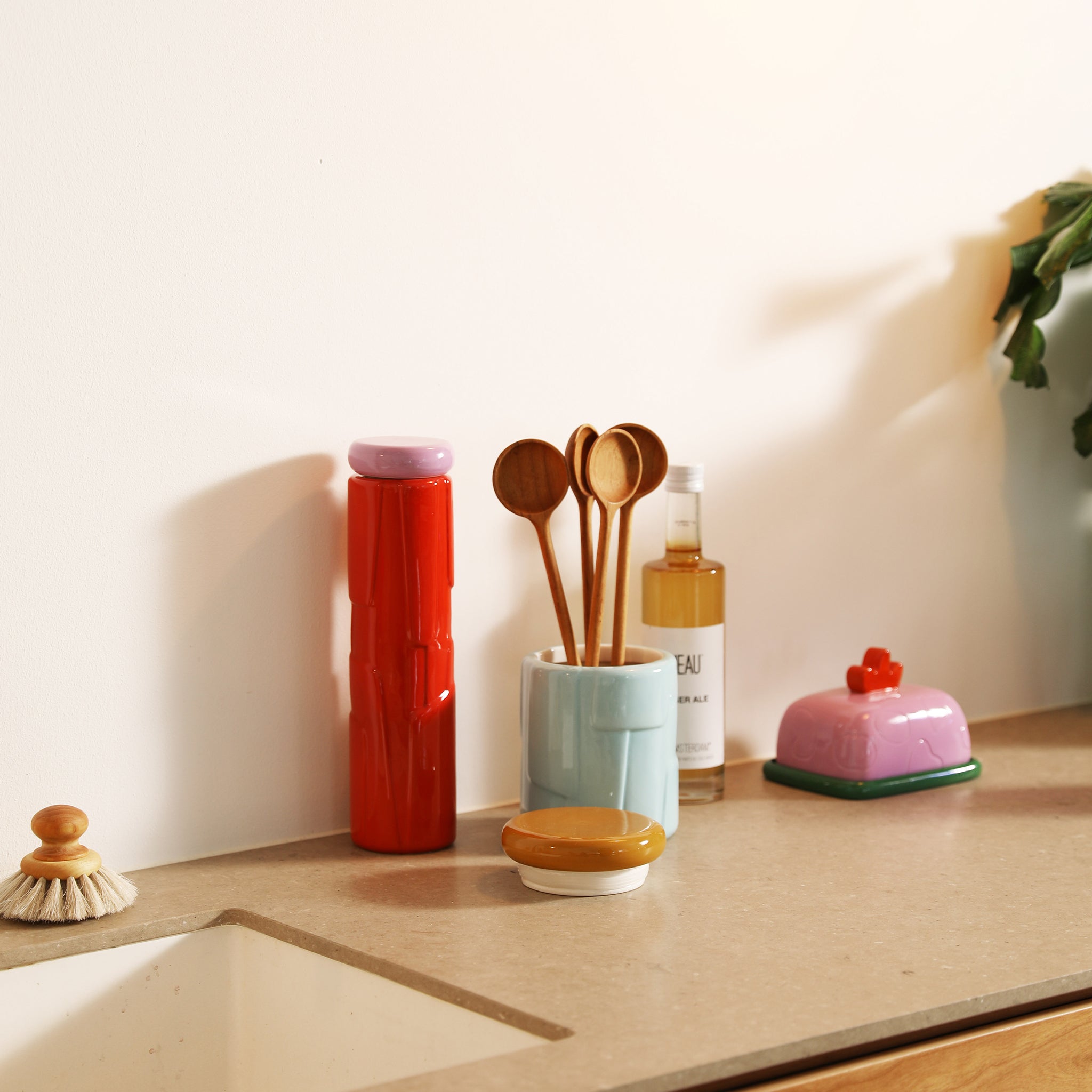 Bu tereyağı kabı ile yemek masanızı şıklaştırın! Zıt renkler ve soyut şekillerle tasarlanmıştır. Tereyağı kabı, taze tereyağınızı serin tutarken masanıza sanatsal bir dokunuş katacak.
