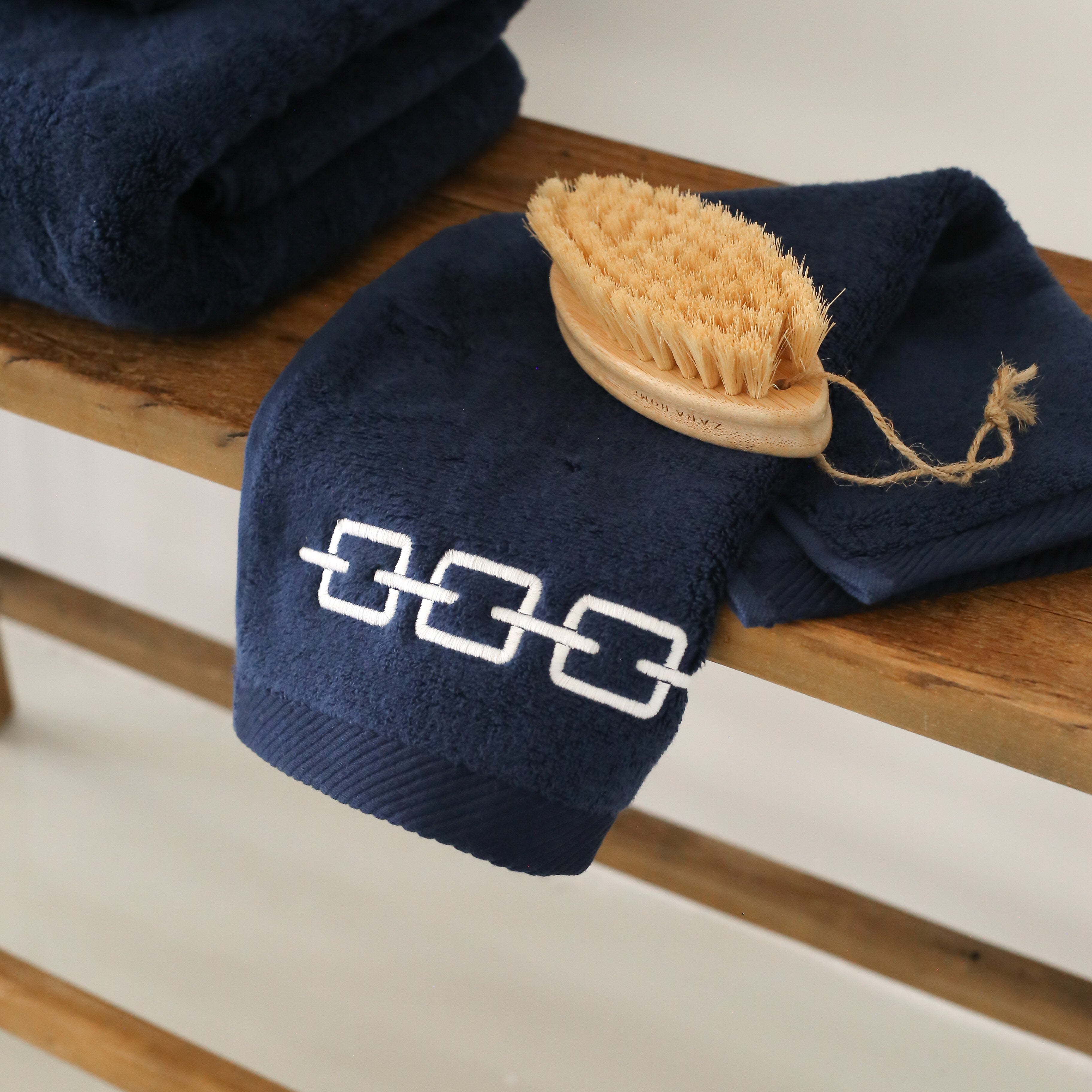 Beyaz Zincir İŞlemeli Pamuk El Havlusu
