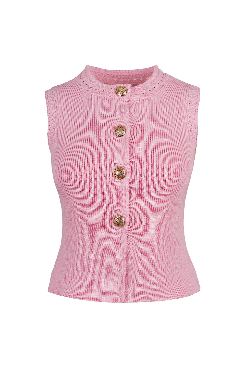 Göz alıcı altın rengi düğmeleriyle dikkat çeken Gold Düğmeli Triko Top, zarif detaylarıyla stilinizi bir adım öne taşır. Bisiklet yaka ve kolsuz tasarımı sayesinde hem modern hem klasik bir görünüm sunar. Günlük kombinlerden ofis şıklığına kadar her ortamda rahatlıkla kullanabilirsiniz.