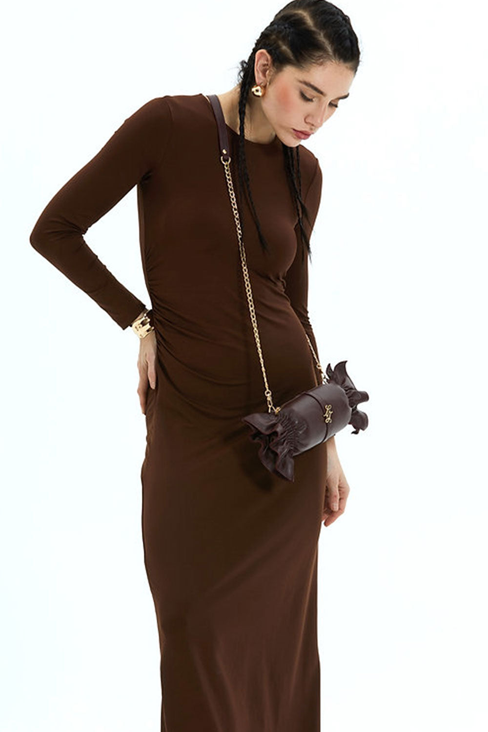 Çıkarılabilir, zincir ve omuz kısmı deri detaylı omuz askısı, fermuar kapatmalı, deri çanta.