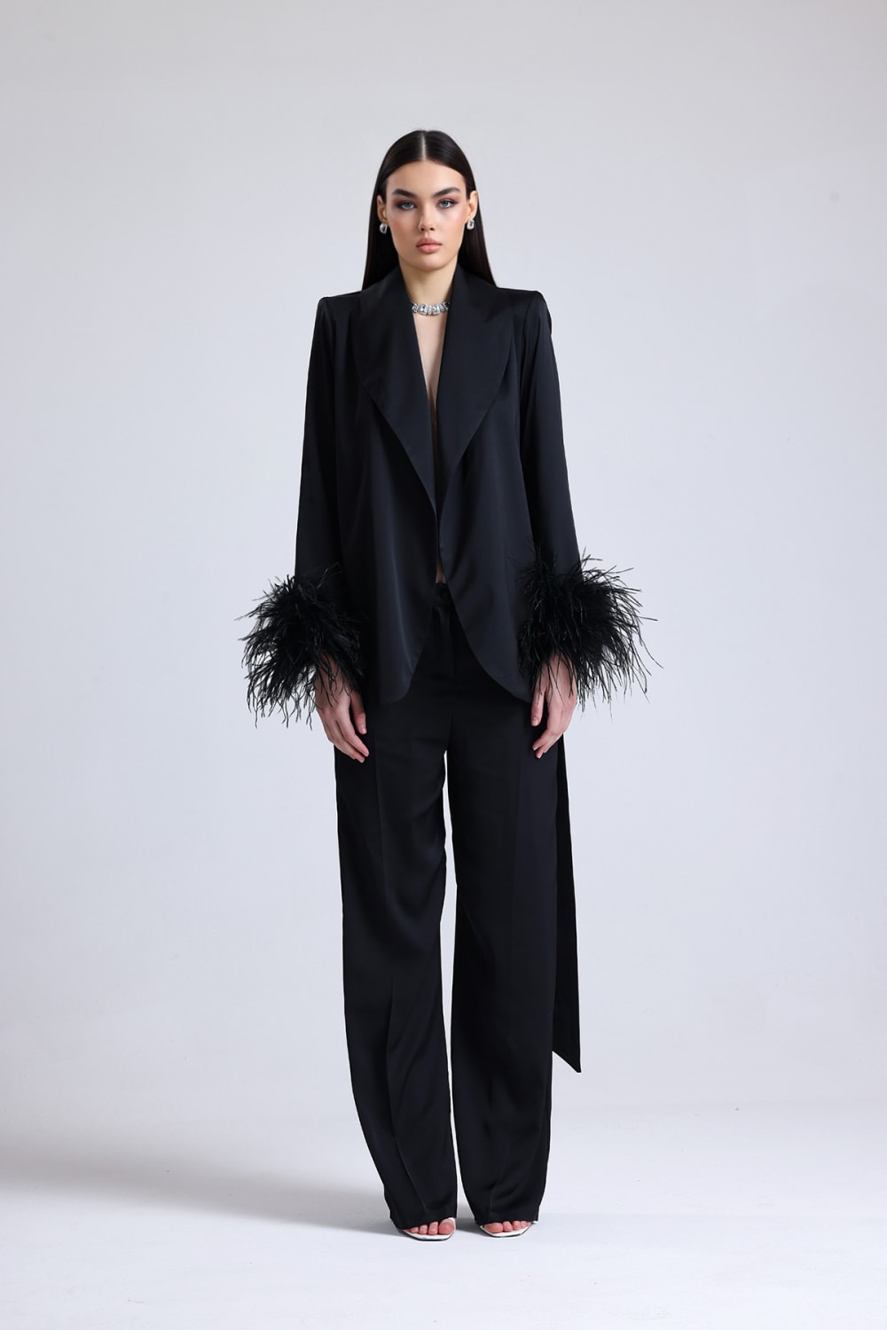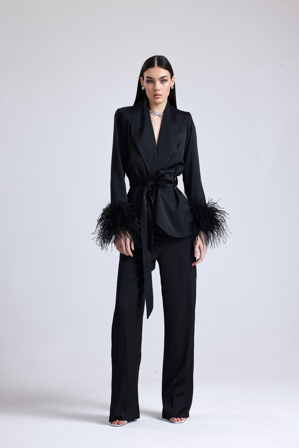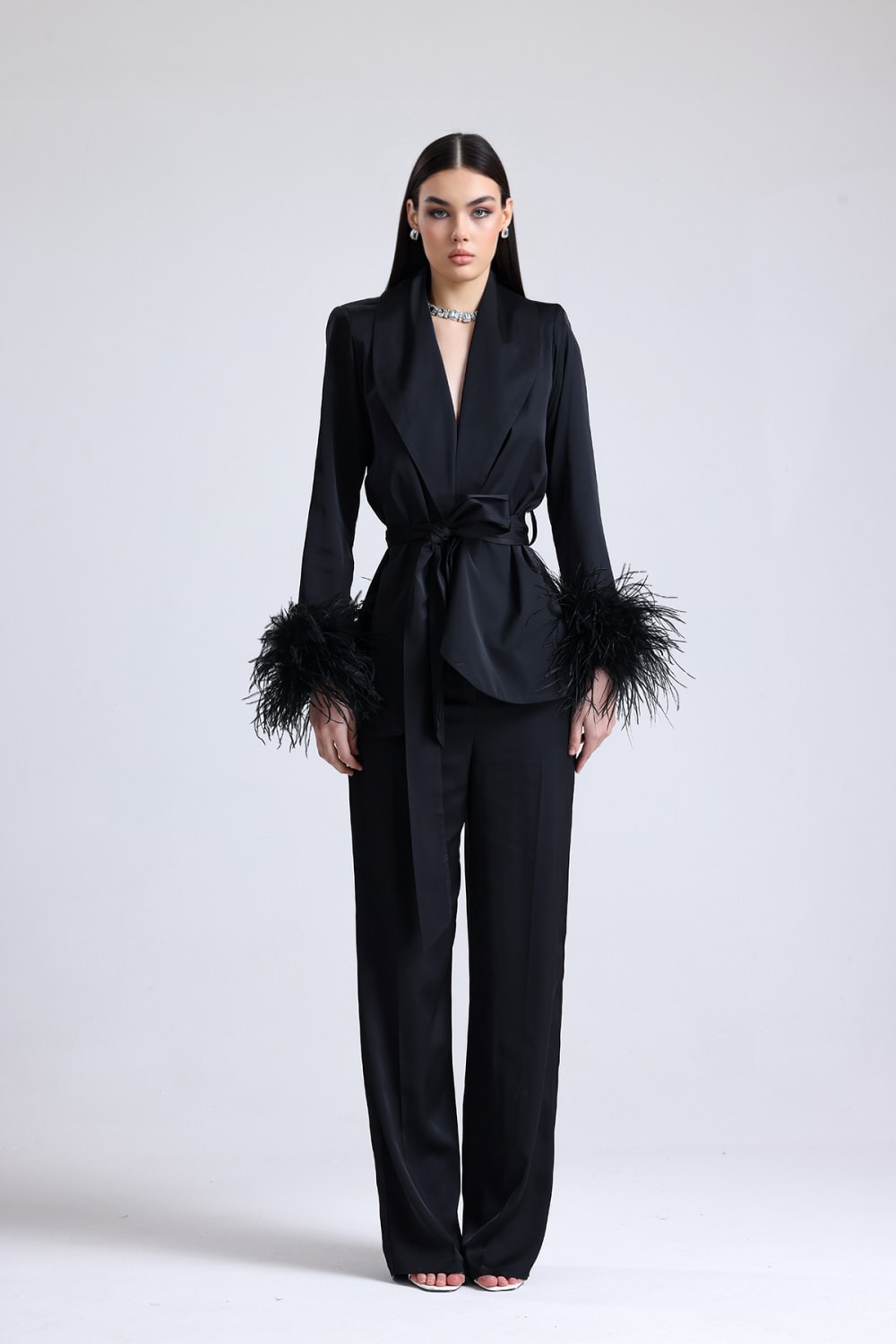 Obsidian Kolları Tüylü Saten Takım