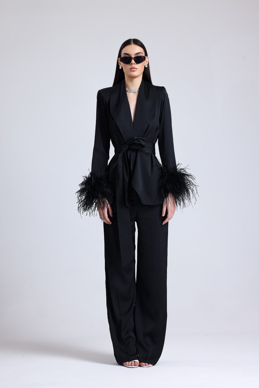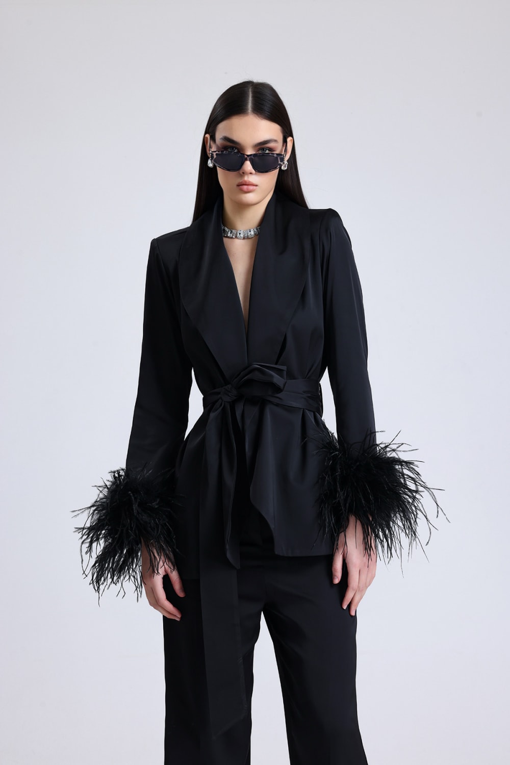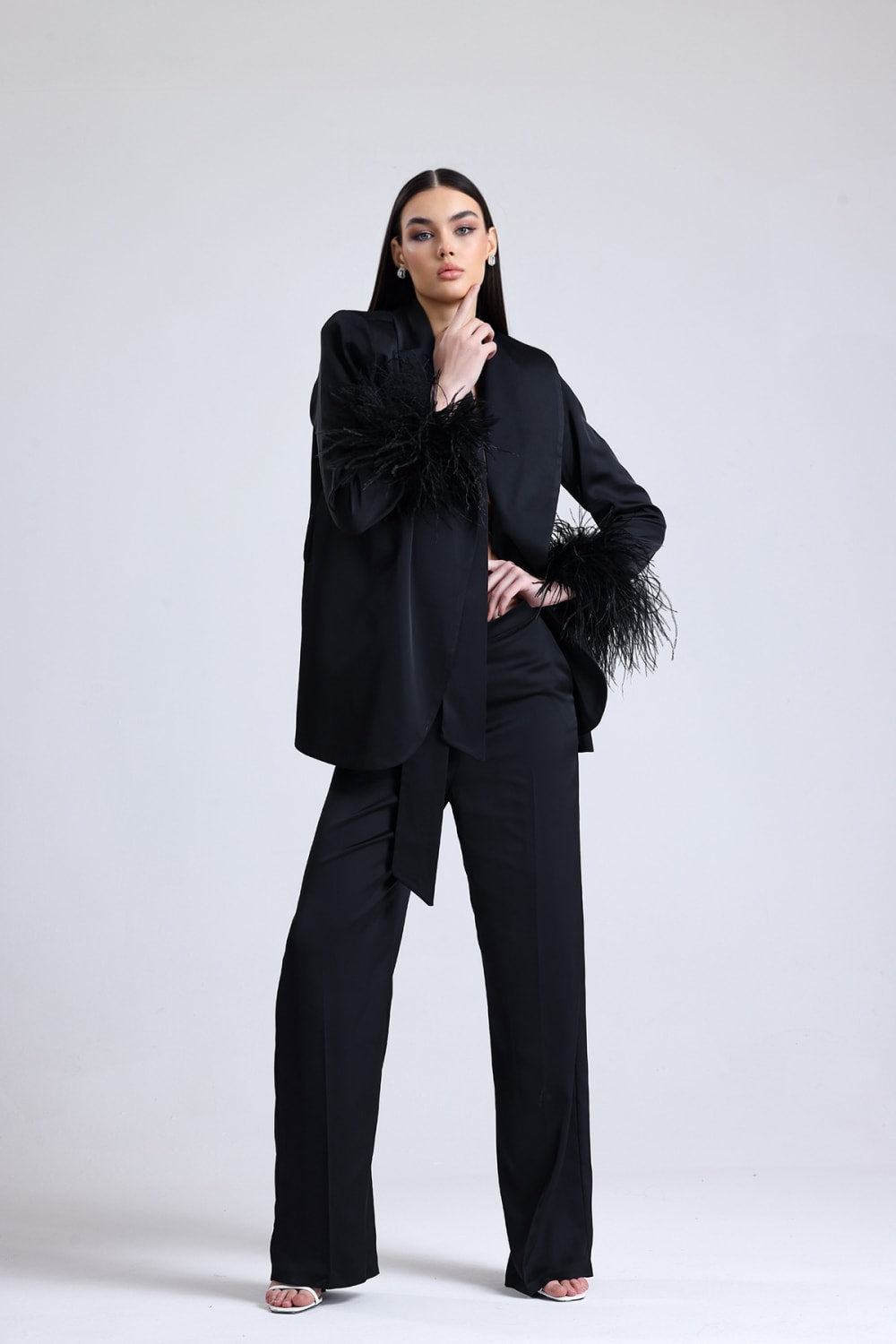 Obsidian Kolları Tüylü Saten Takım