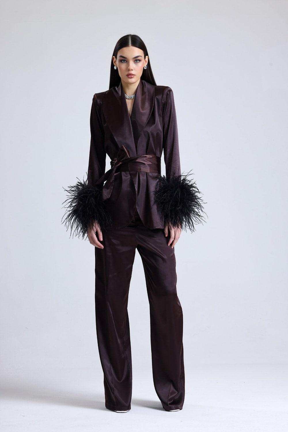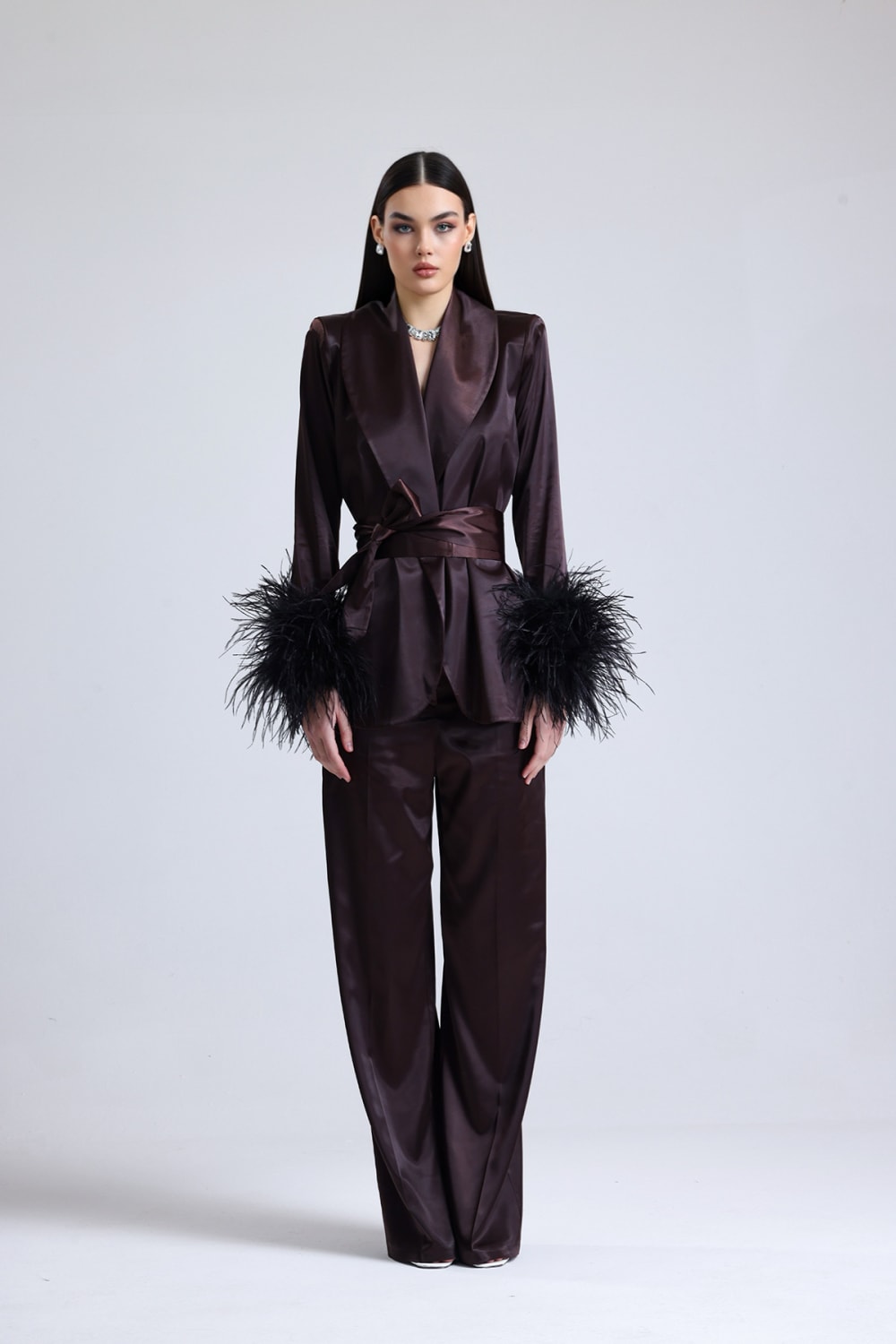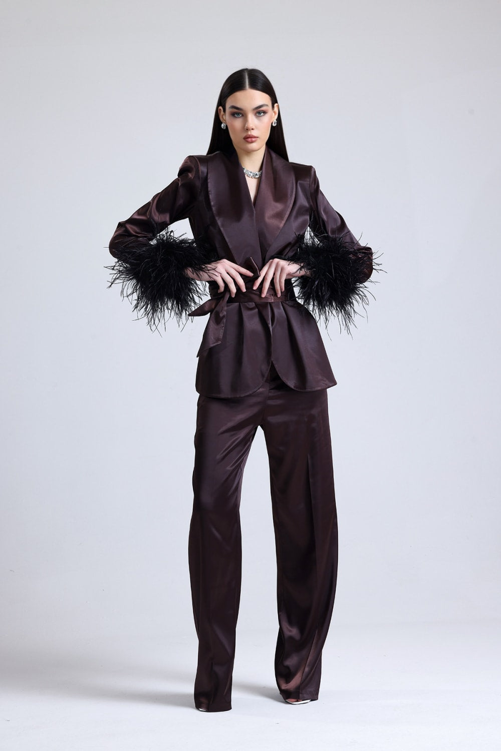 Satin Ember Kolları Tüylü Takım
