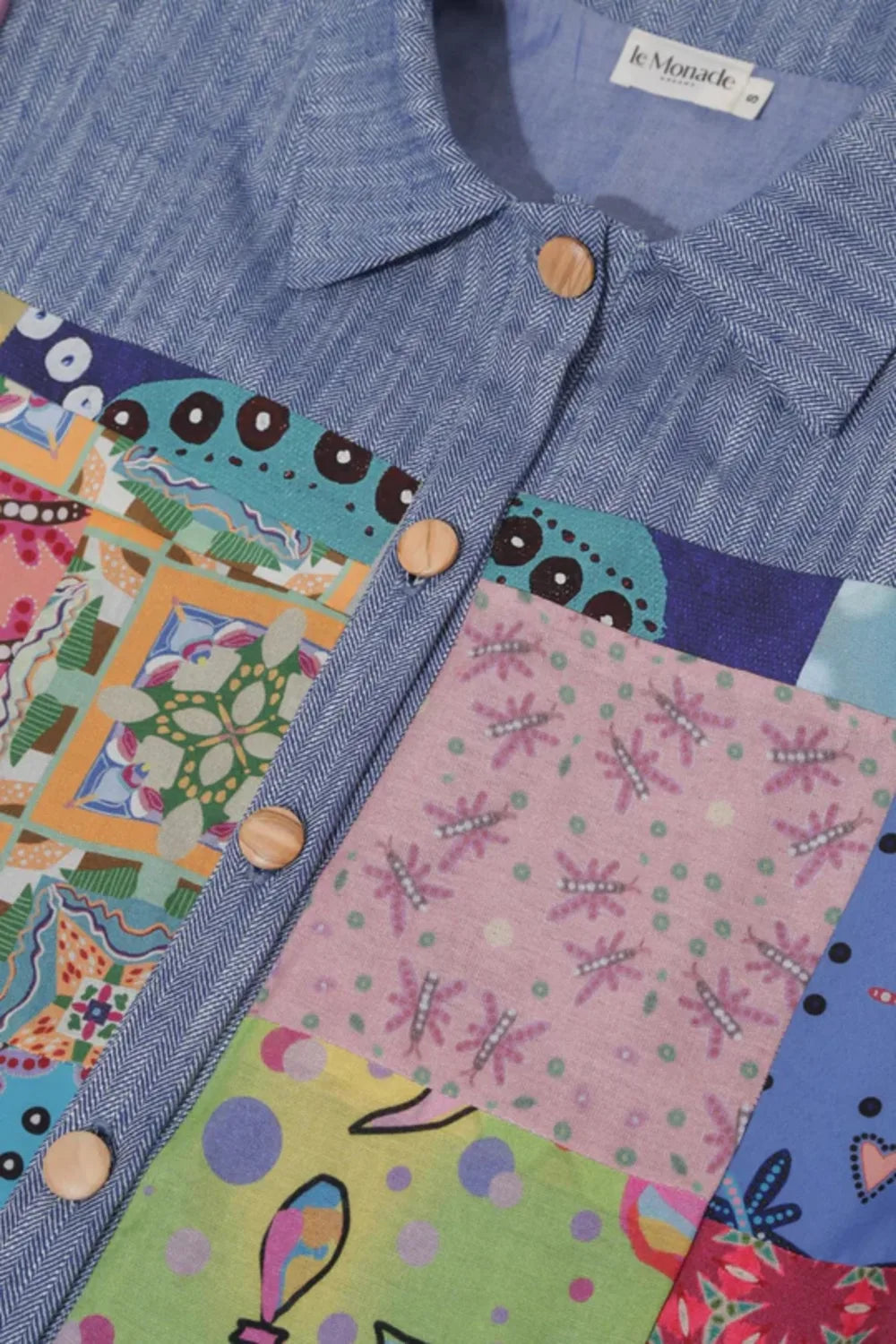 Auroro CeketDesenler, Sanatçı Defne Camcıoğlu’nun eserlerinden oluşturulmuştur,Viskon karışımlıdır, astarlıdır,Ürün, dökümlü ve yumuşak dokulu viskon karışımlı kumaştan üretilmiştir,Gömlek yaka ve düğme detaylı olan ceket patch birleşimleri ile şık bir görünüm sunmkatadır.BAKIM ÖNERİLERİ:30 derecede yıkama yapılabilir,Ağartıcı kullanılamaz,Makinede kurutmayınız.S BedenGöğüs: 54 cmBoy: 54 cmM BedenGöğüs: 56 cmBoy: 54 cm