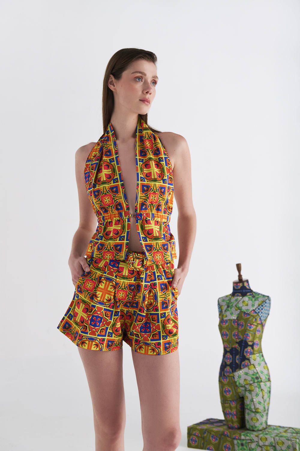 Desenler, Sanatçı Defne Camcıoğlu’nun eserlerinden oluşturulmuştur,%100 Pamuk,Ürün dayanıklılık ve konfor gözetilerek, ince dokulu ve tok duruşlu poplin kumaş ile özenle tasarlanmıştır,Geometrik desenlerden oluşan eser, poplin kumaş'a dijital baskı yöntemi ile basılmıştır,Beli lastikli, yüksek bel olan ürün, kemer detayı ile şık bir görünüm sunmaktadır.BAKIM ÖNERİLERİ:30 derecede yıkama yapılabilir,Ağartıcı kullanılamaz,Makinede kurutmayınız."S BedenBoy: 40 cmBel: 62 cmKalça: 96 cmM BedenBoy: 42 cmBel 68 cmKalça: 100 cm