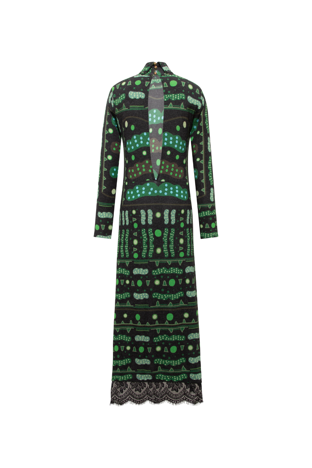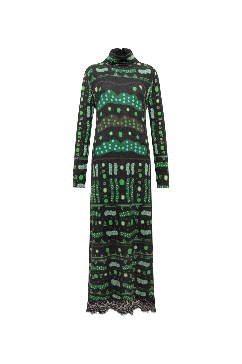 Yeşil Bulut Desenli Dantel Detaylı Uzun Elbise