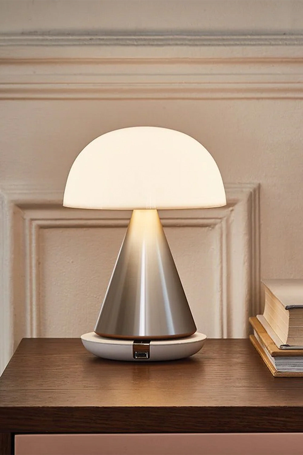 İkonik portatif Mina lambamızın büyük versiyonu görkemli bir tasarıma ve formata sahiptir, bu da onu hem iç mekanınızı hem de dış mekanınızı aydınlatmak için ideal nesne haline getirir.Mina L, indüksiyonla şarj edilebilir ve Qi teknolojisine sahip tüm kablosuz şarj cihazlarıyla uyumludur. Ürünle birlikte verilen USB-C kablosunu kullanarak da şarj edebilirsiniz. Mina L, 9 farklı mod rengi ile komodininizi, ofisinizi veya bahçenizi aydınlatacak ve ruh halinize uyum sağlayacak. Lambanın üst kısmına basarak LED'in rengini veya yoğunluğunu değiştirin.Mina L, basit bir ücret karşılığında 24 saate kadar özerklik sunar ve böylece gecenin sonuna kadar size eşlik edebilir. Dış mekan kullanımına uygun Mina L, IPX4 kasası sayesinde yağmura dayanıklıdır.