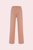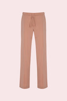 Unisex lightweight wide leg trouser in shiny orange fabric with elasticated waist.