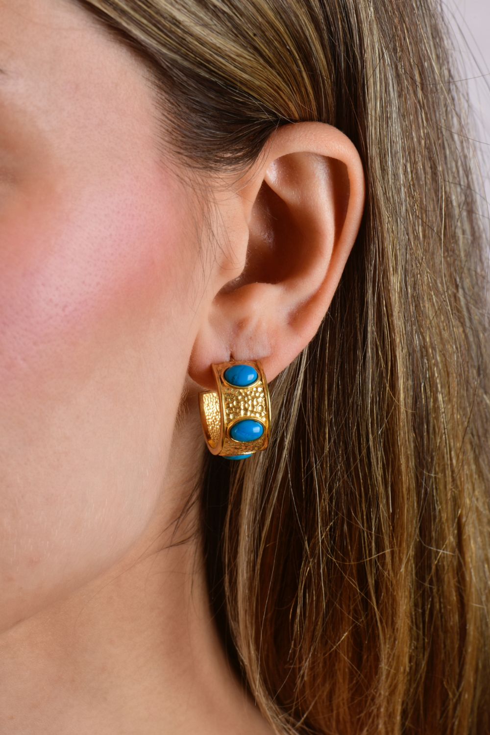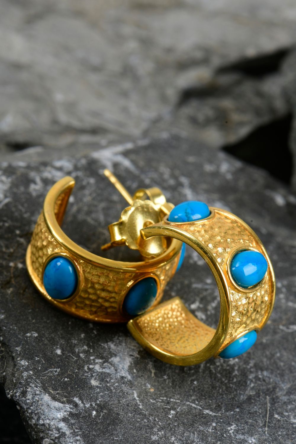 Lumina Turkuaz Taş Kalın Halka Gümüş Küpe