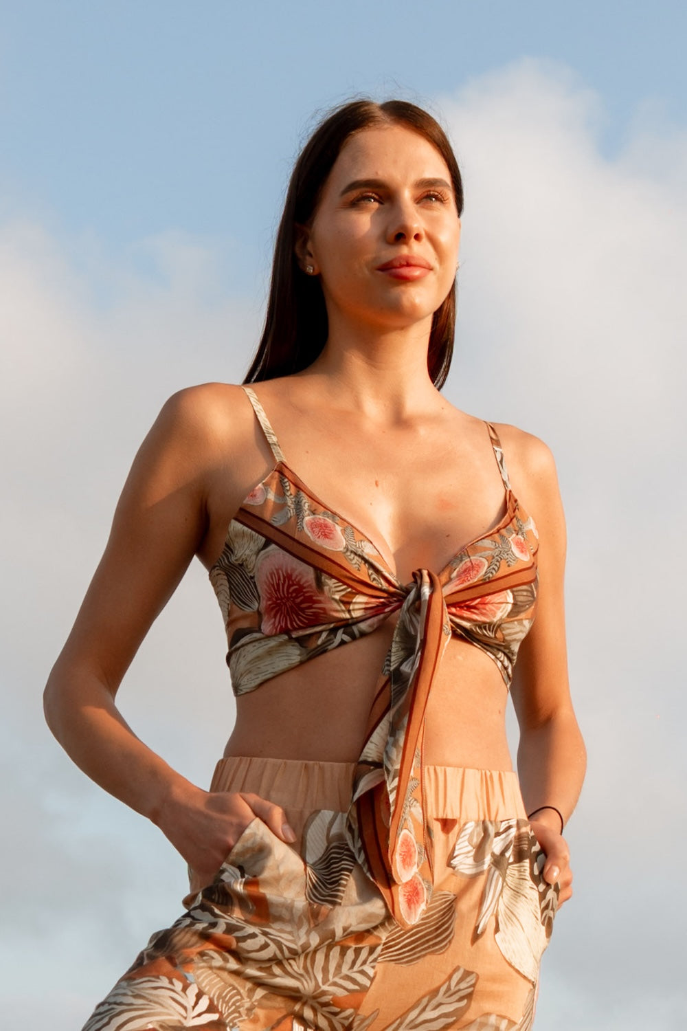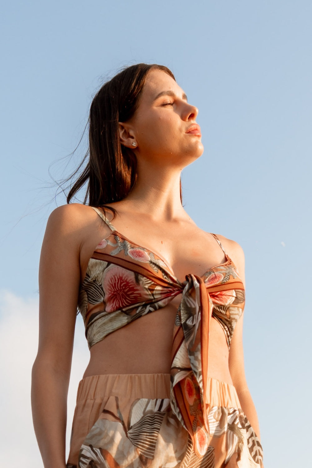%100 pamuk kumaştan önden bağlamalı ayarlanabilir askılı bralet.