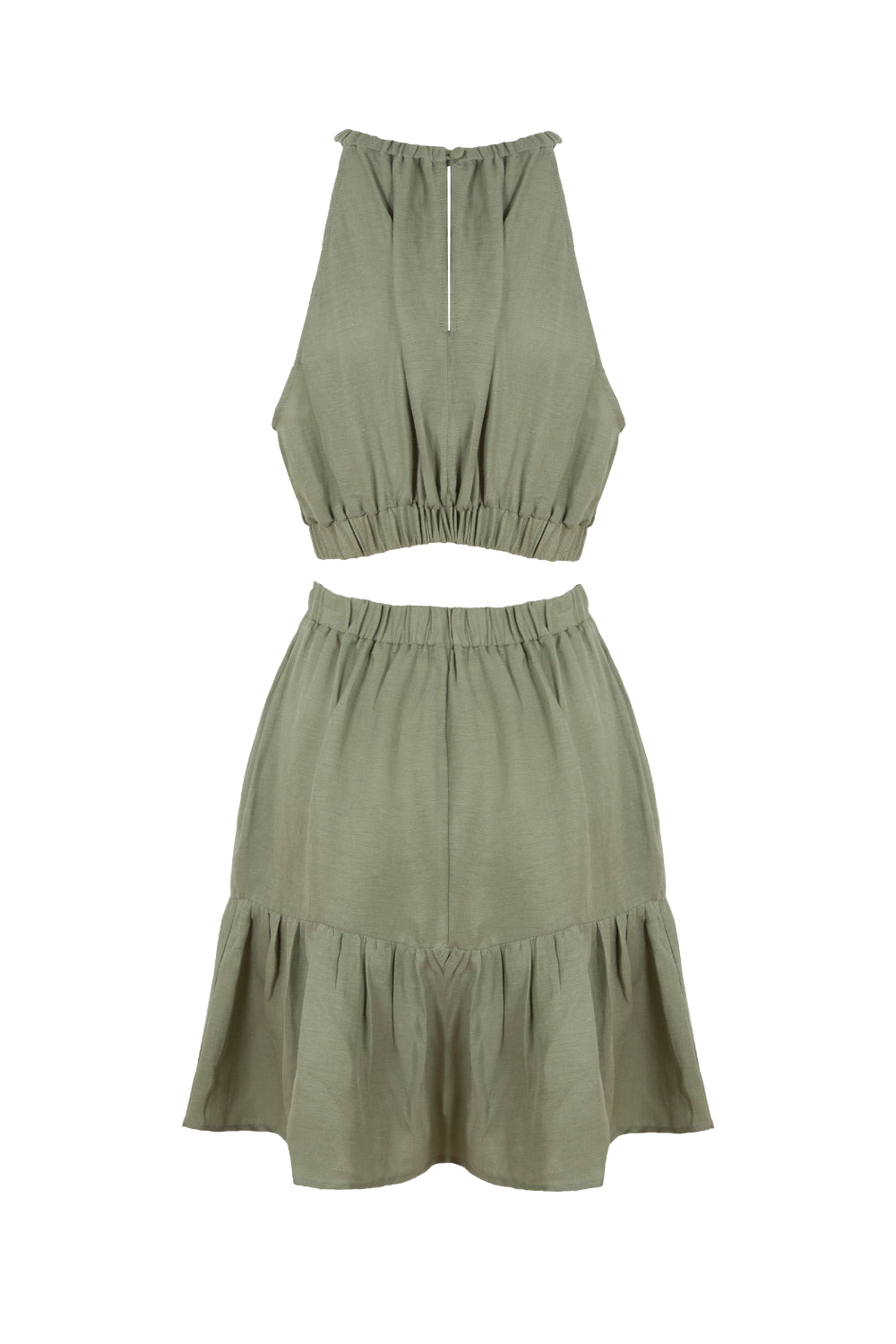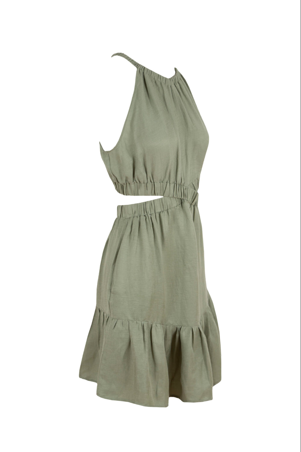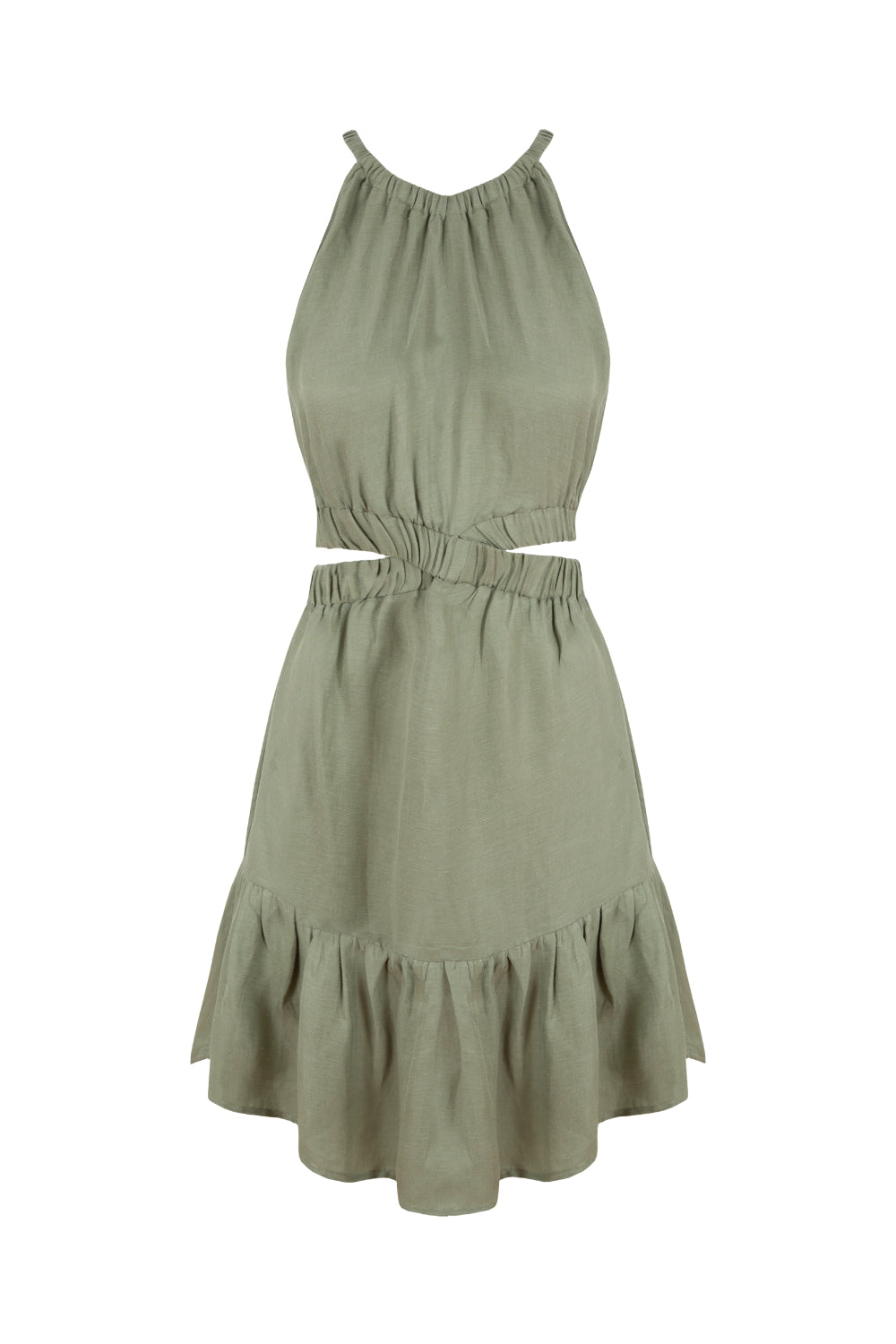Alexa Cutout Vegan Keten Mini Elbise Aqua