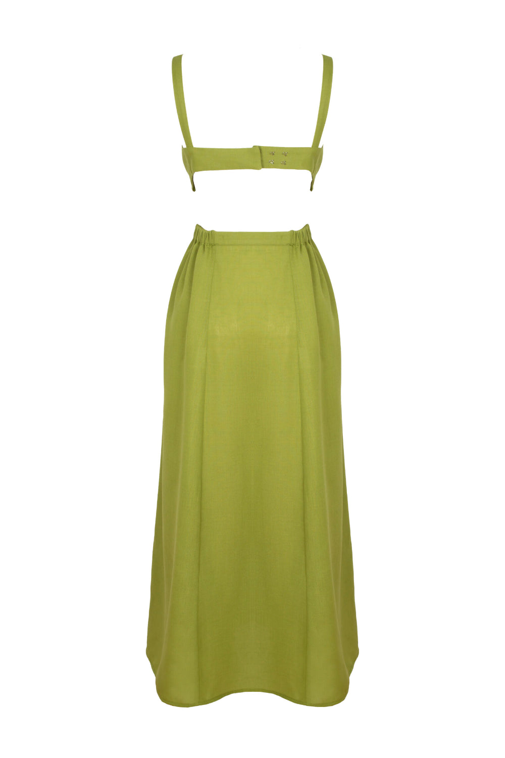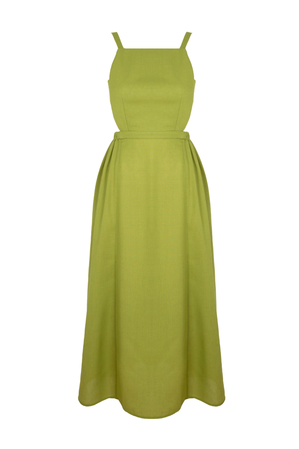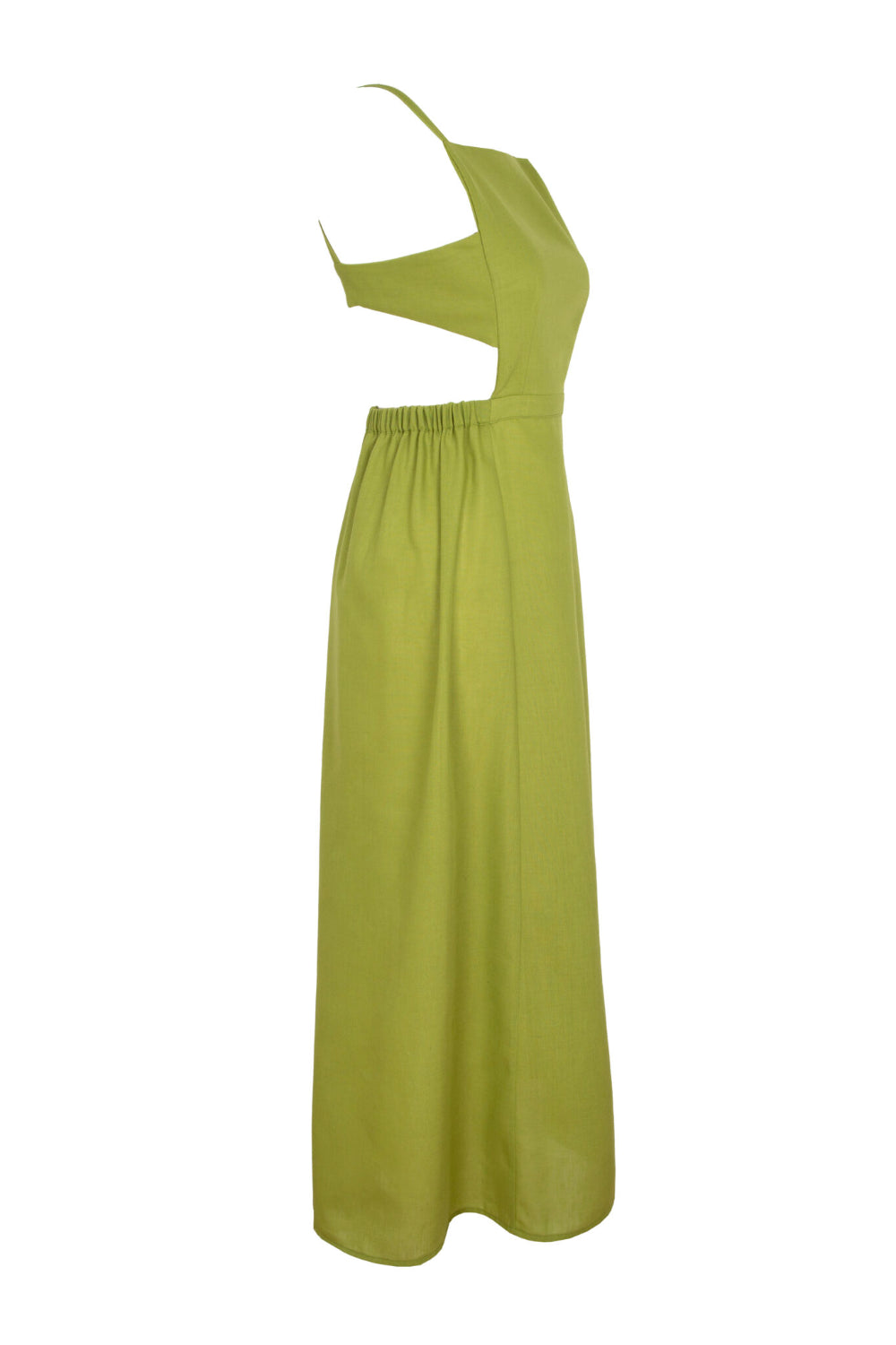 Naya Yeşil Keten Sırt Dekolteli Elbise