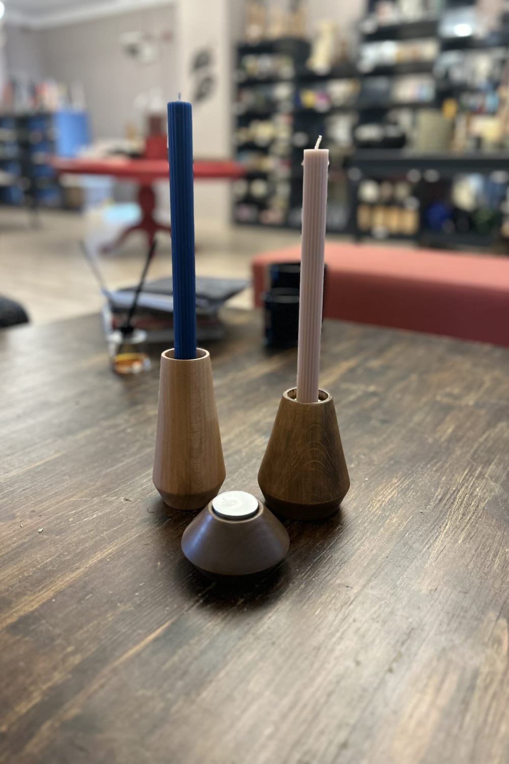 Conico 3'lü Ahşap Şamdan & T-Light Mumluk