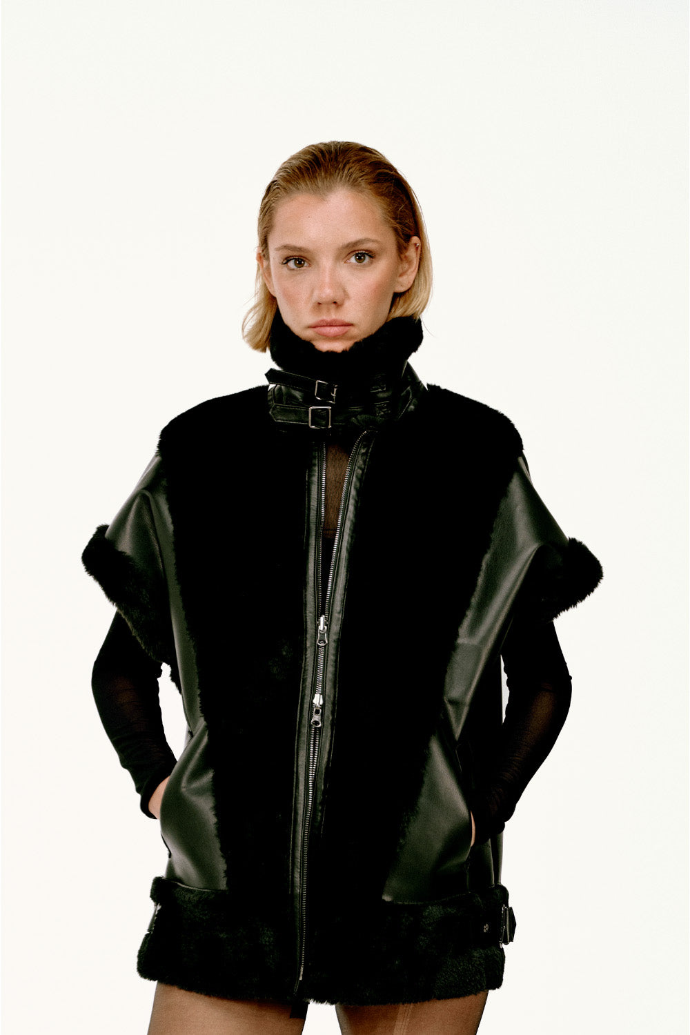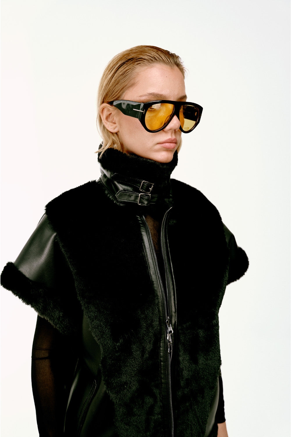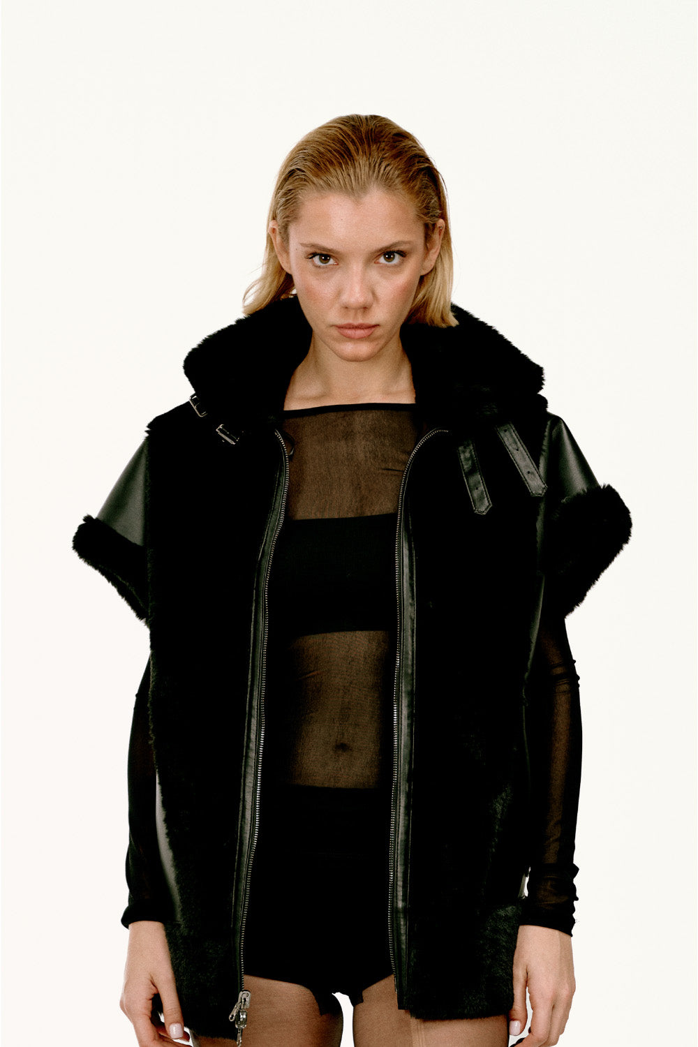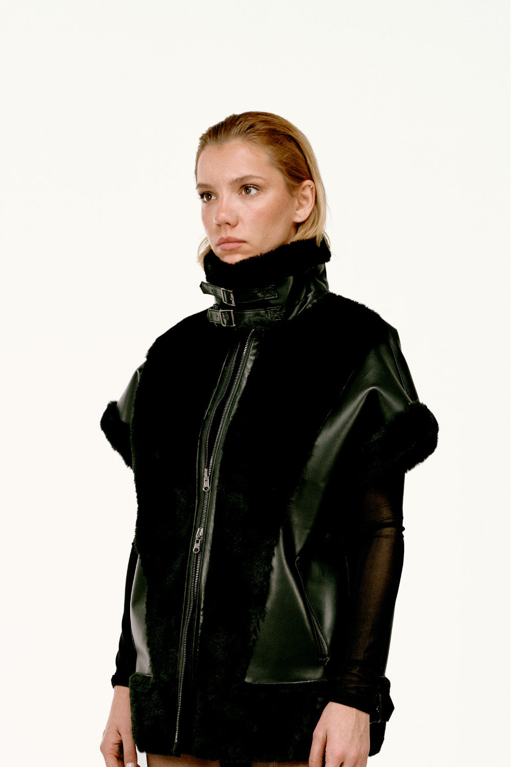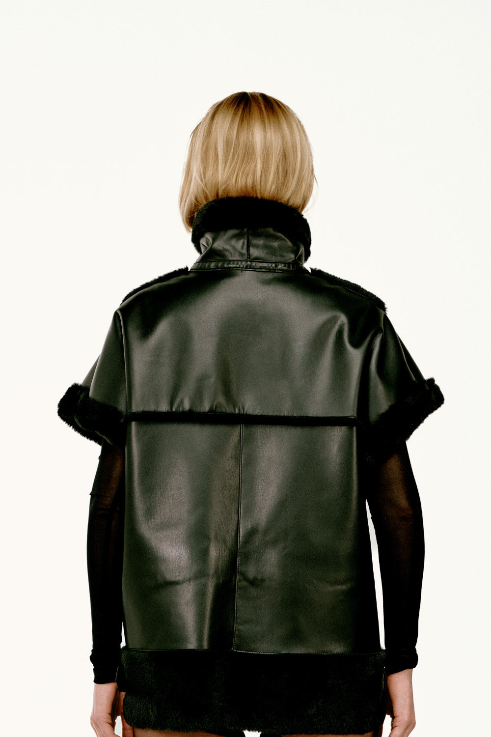 Carl Ters Çevrilebilir Çift Taraflı Vegan Deri - Kürk Yelek