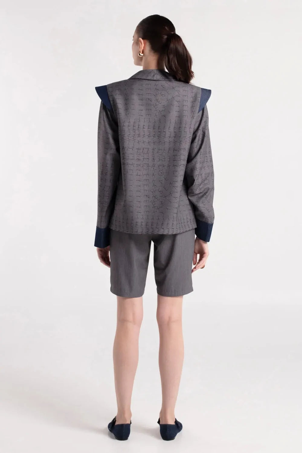Ub - Asimetrik Yaka Kot Detaylı Oversize Ceket
