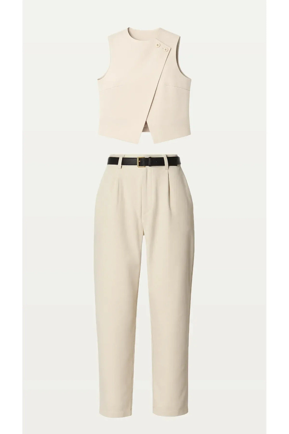Açık Bej Asimetrik Bluz & Pantolon Takım