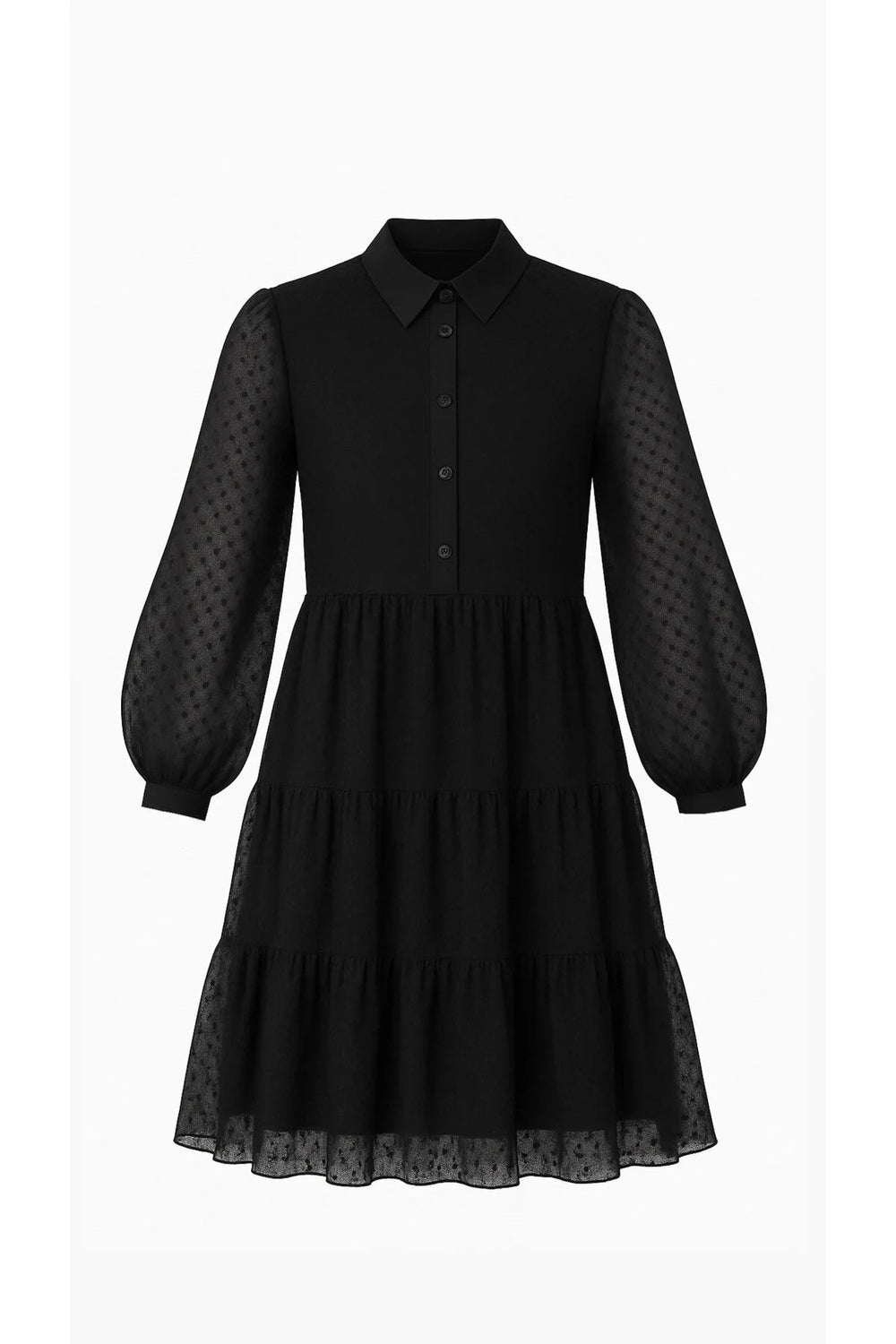 Siyah Tül Üzeri Puantiyeli Gömlek Elbise