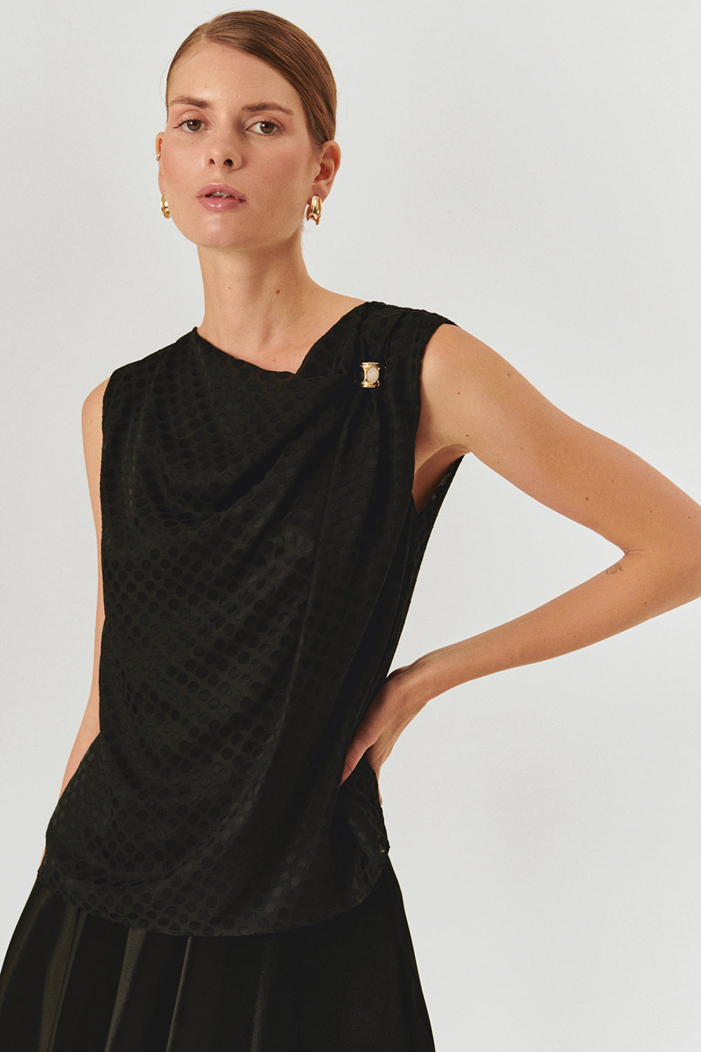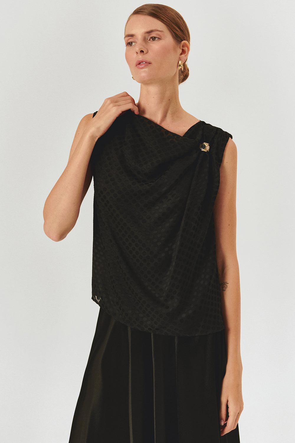 Asimetrik Yakalı Regular Fit Kolsuz Siyah Bluz