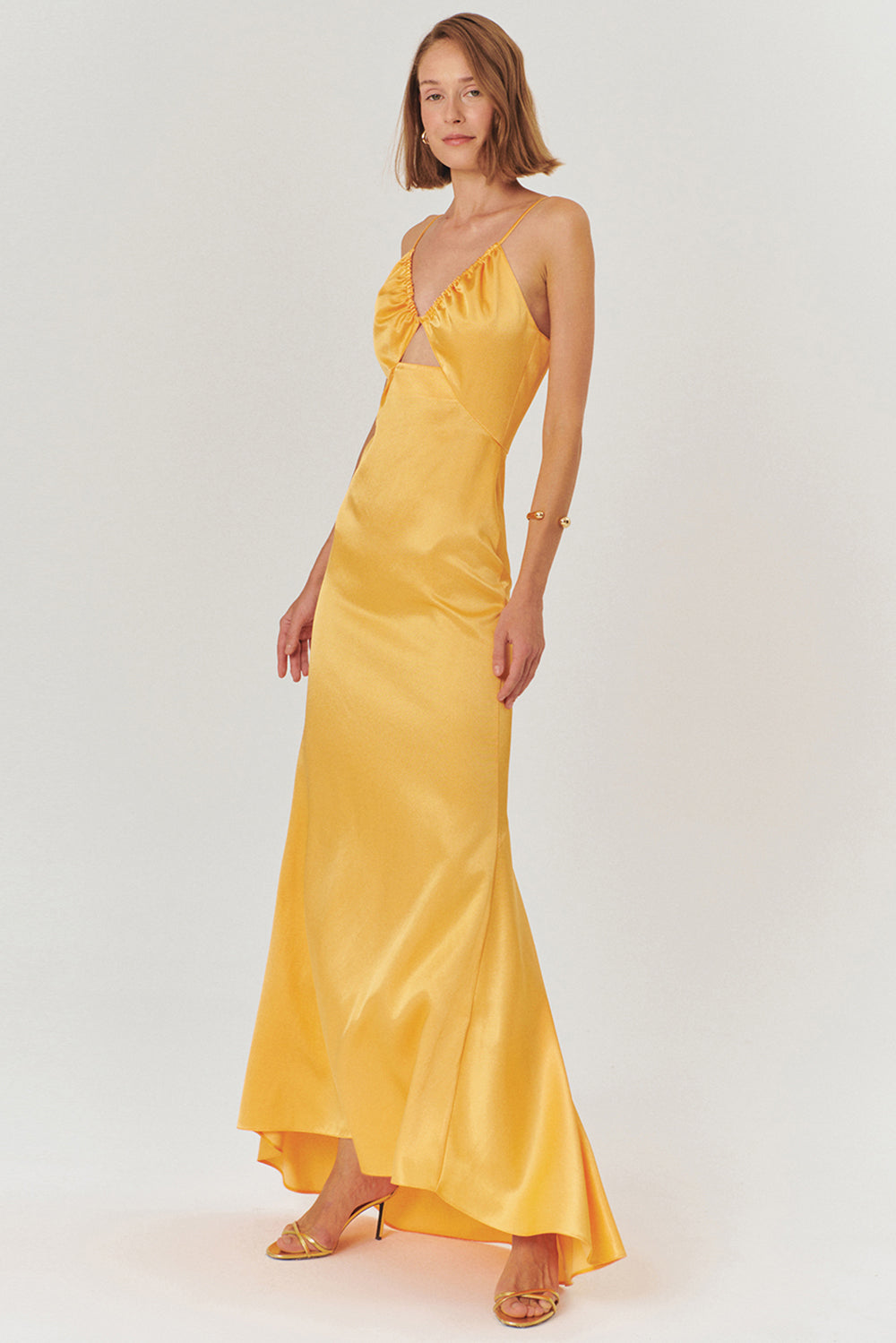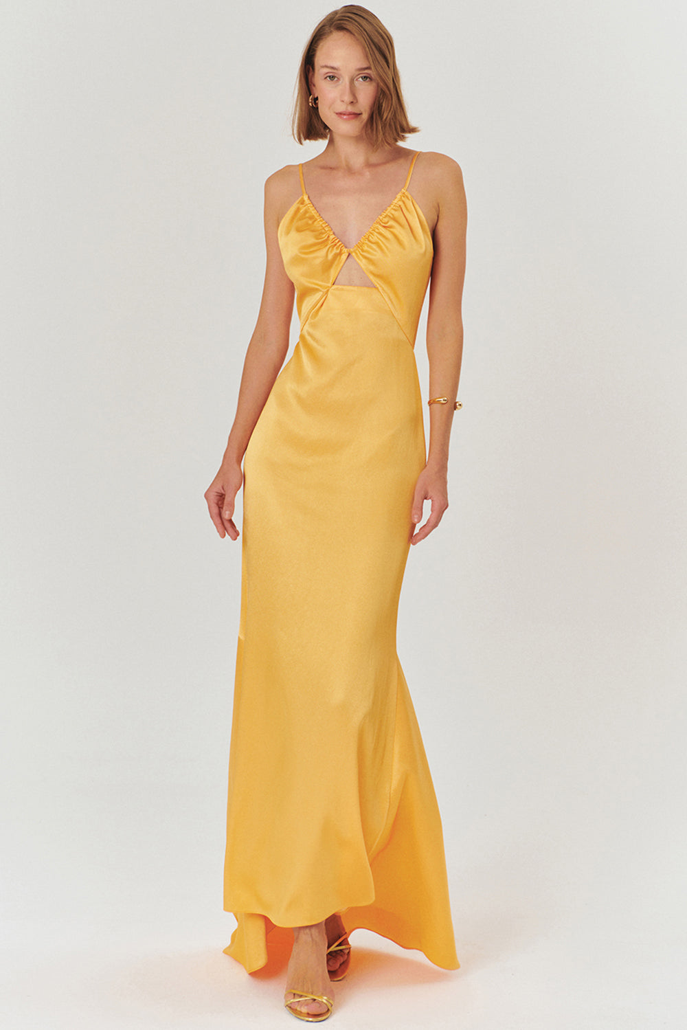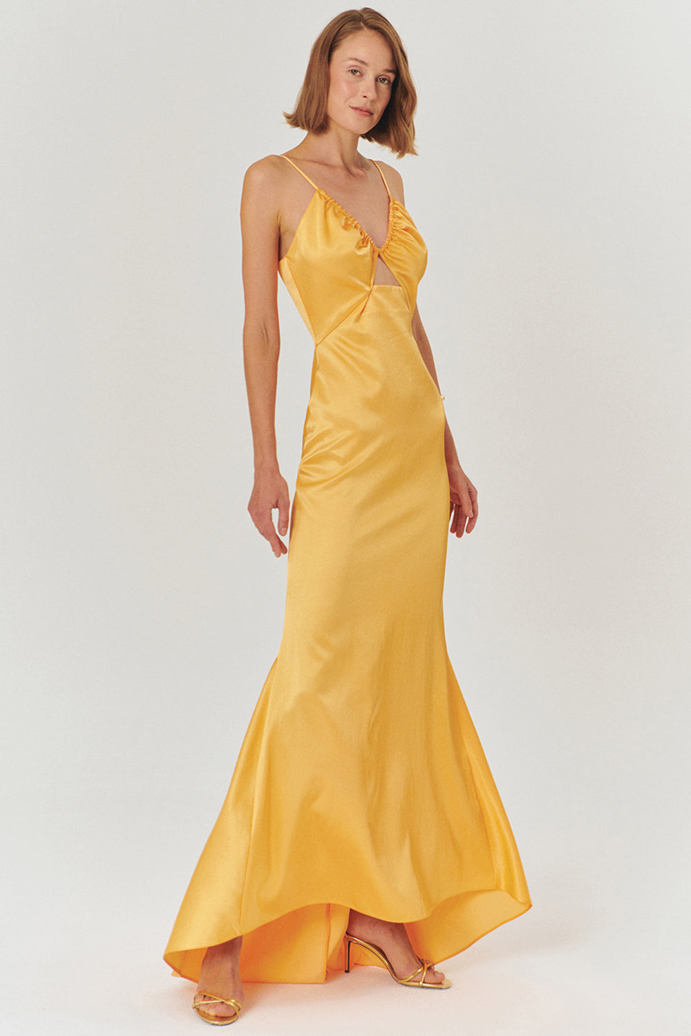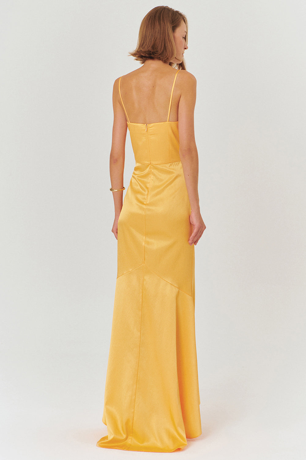 Askılı A Kesim Regular Fit Saten Maxi Elbise
