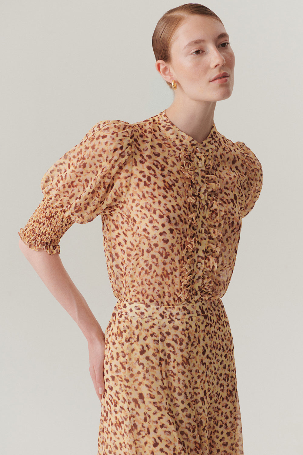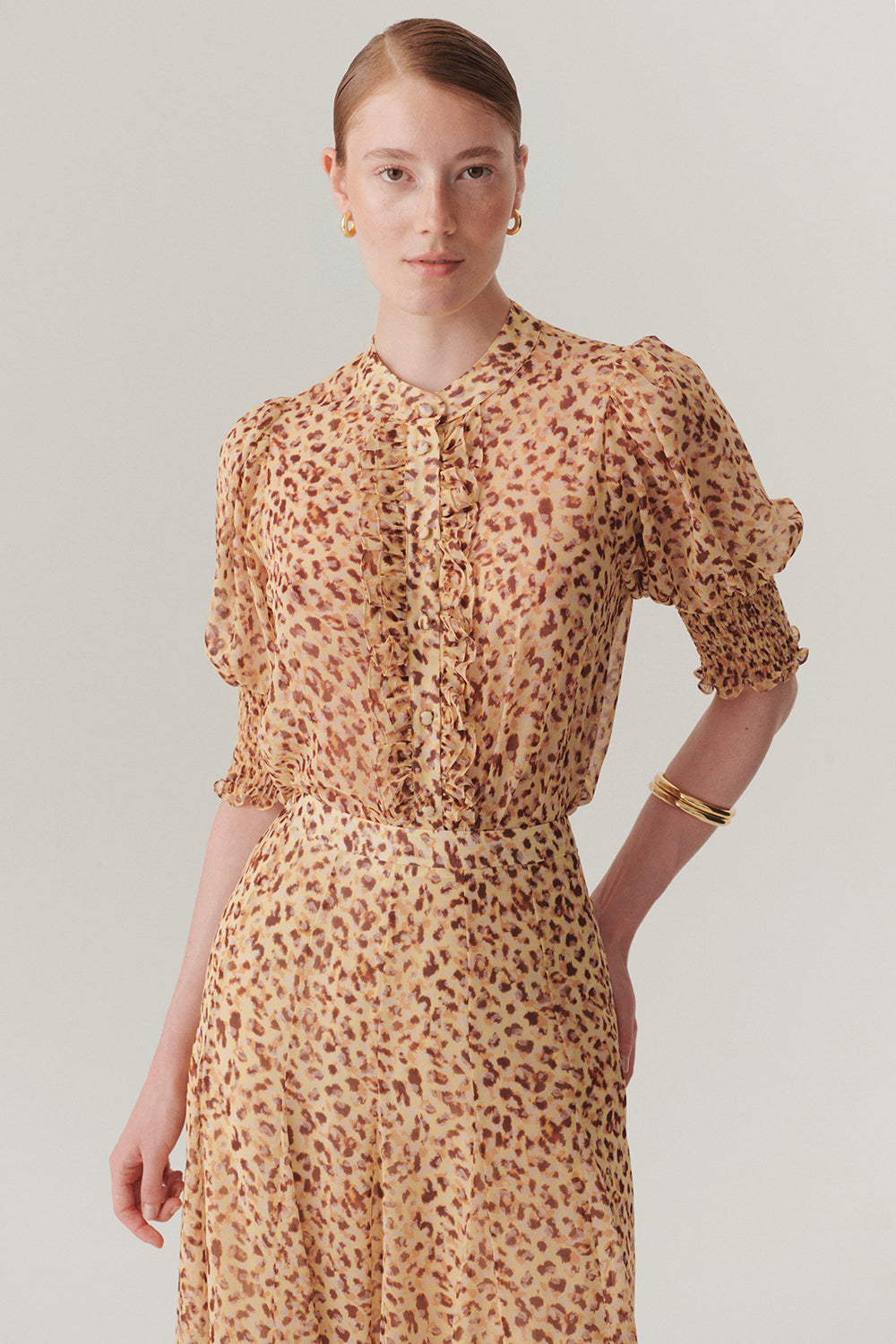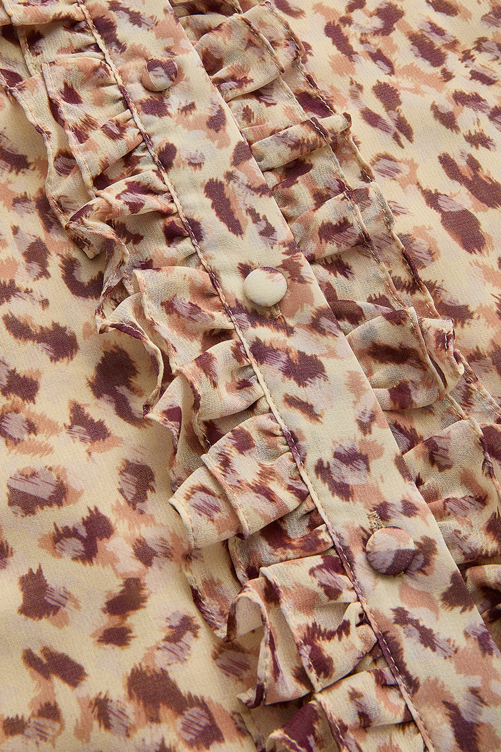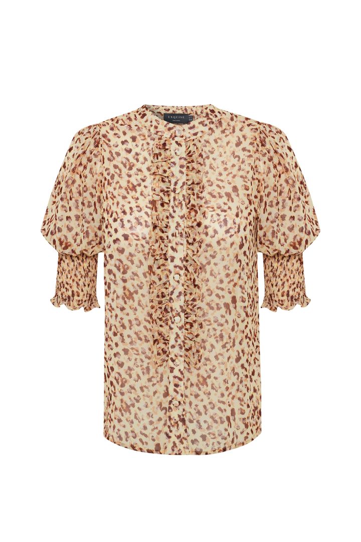 Kısa Kol Fırfır Biye Detaylı Regular Fit Desenli Şifon Gömlek