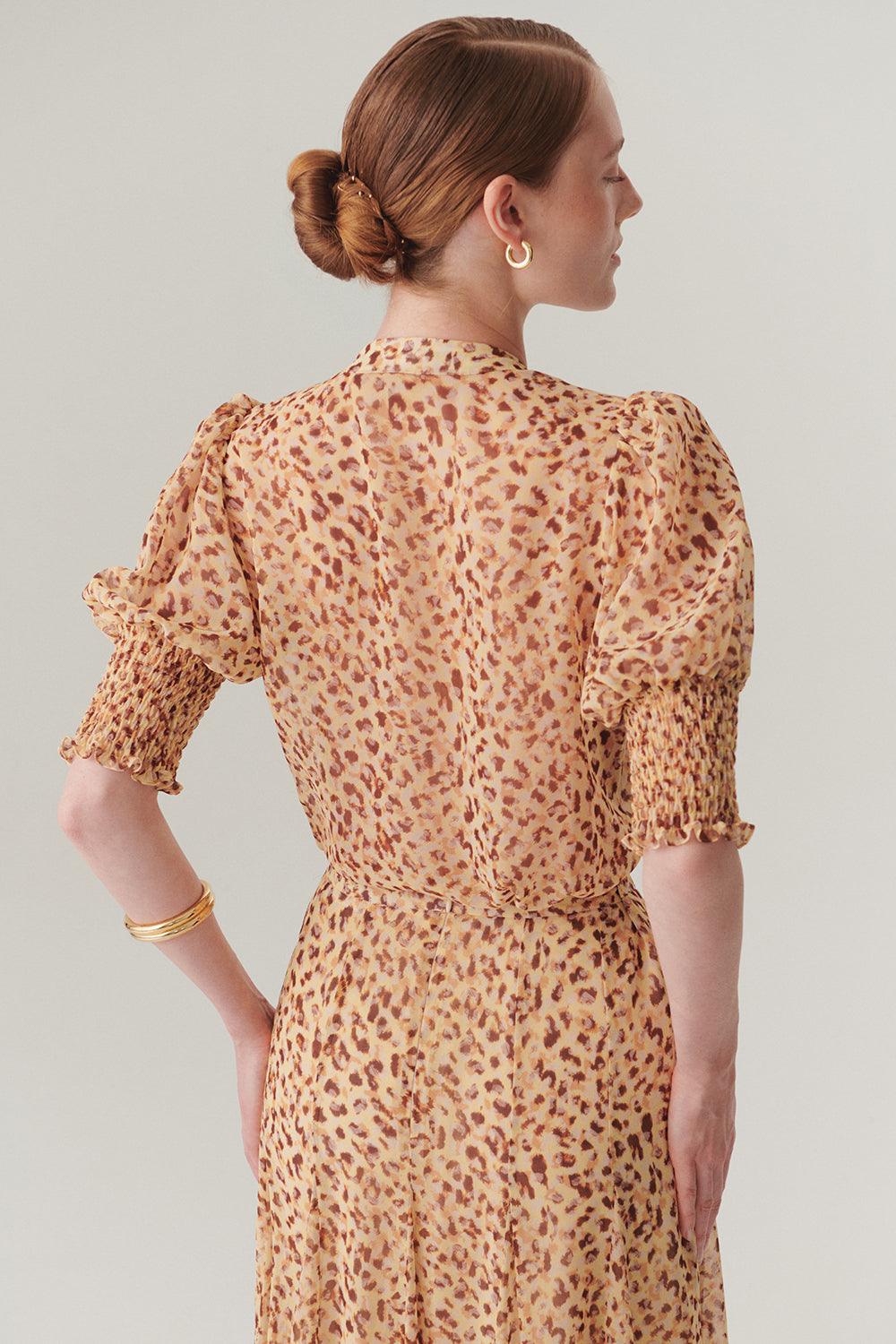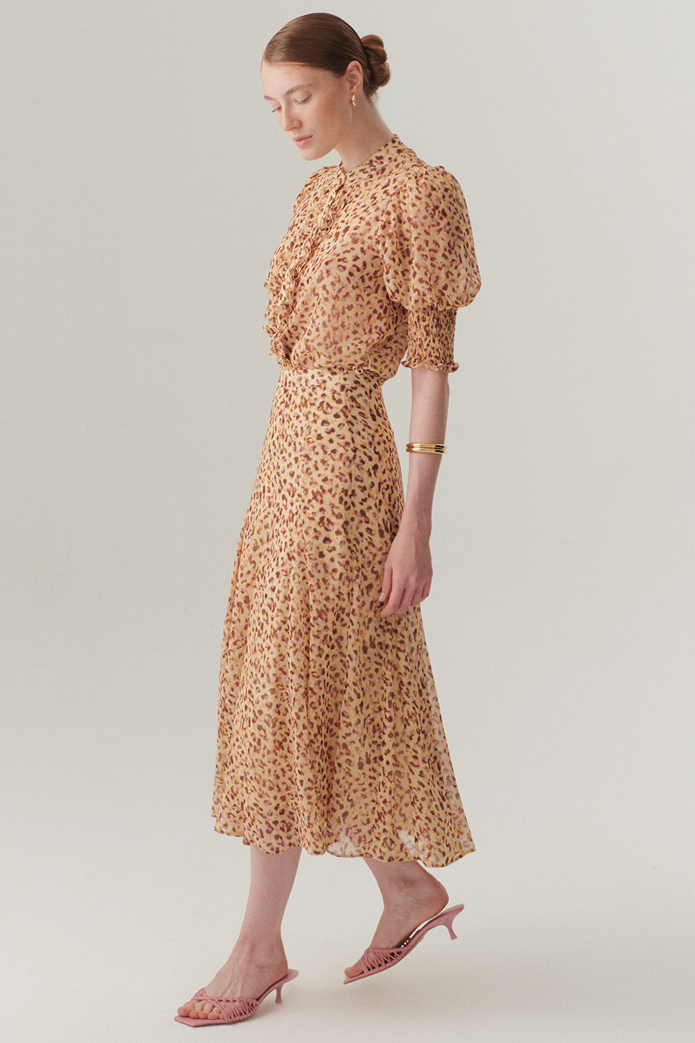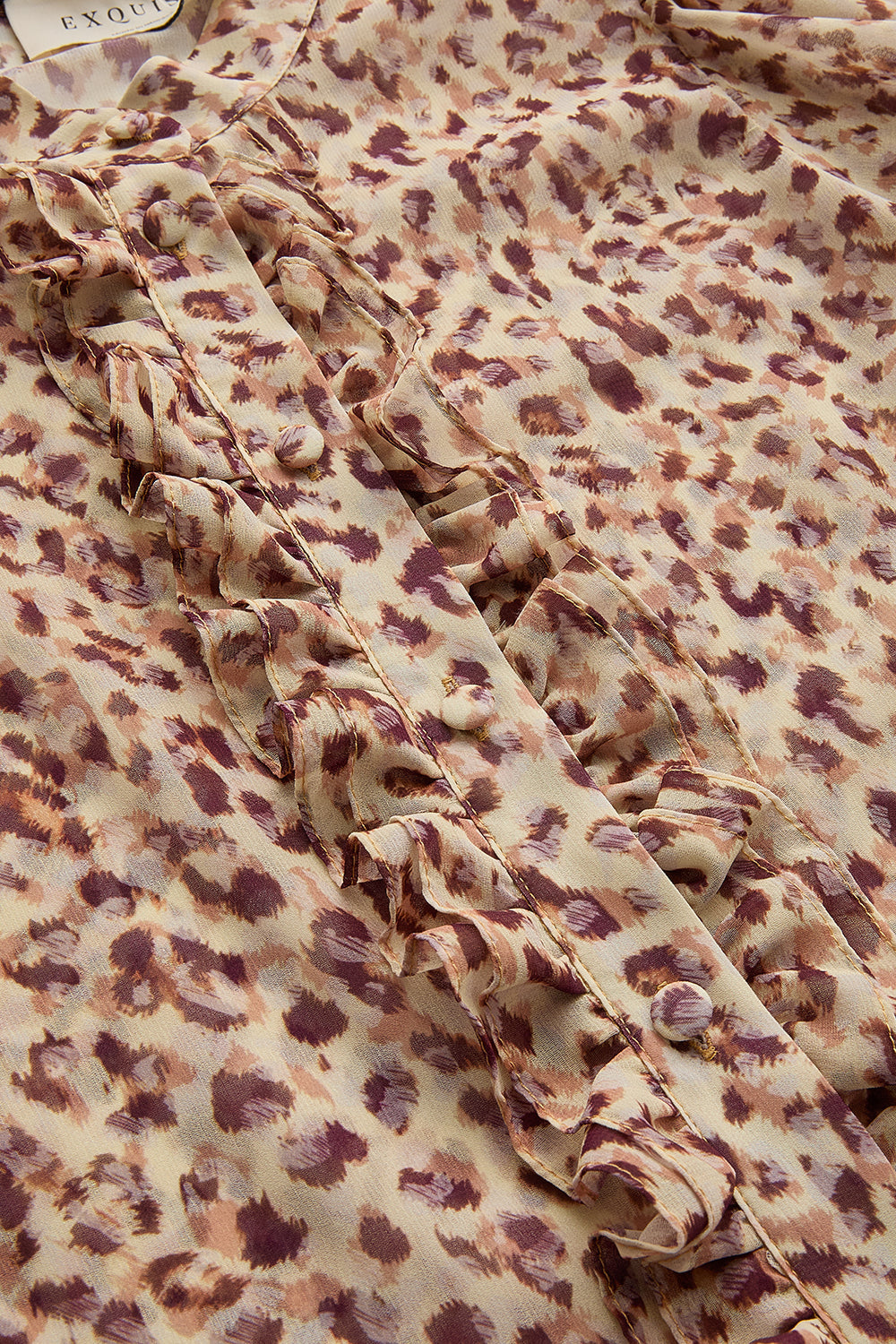 Kısa Kol Fırfır Biye Detaylı Regular Fit Desenli Şifon Gömlek