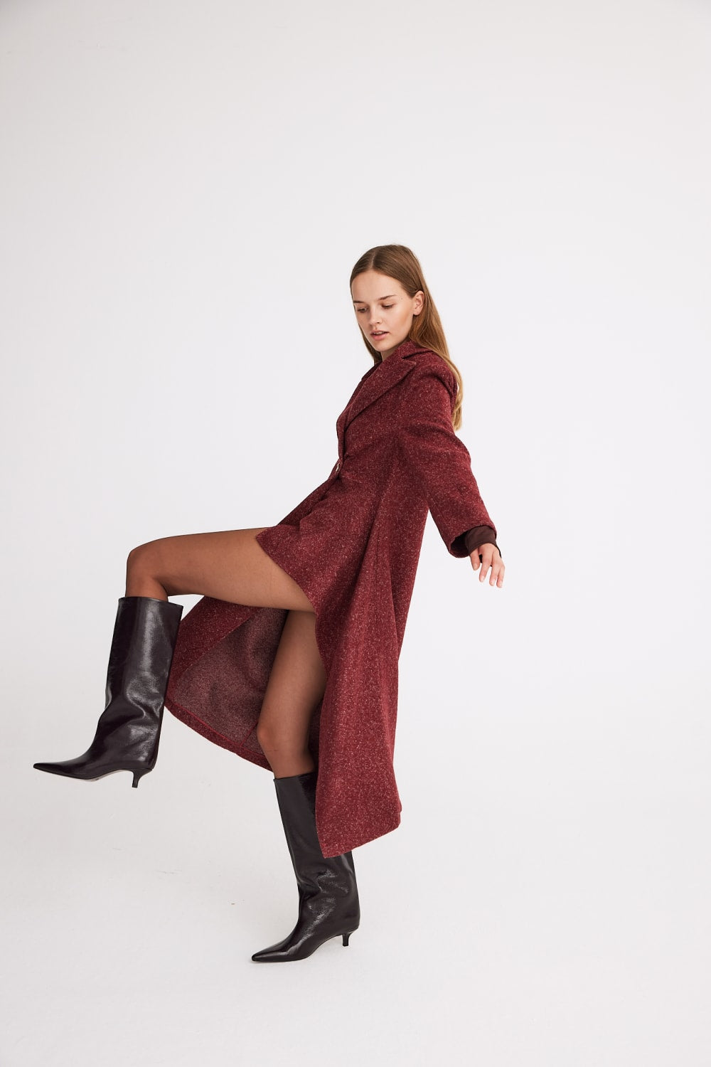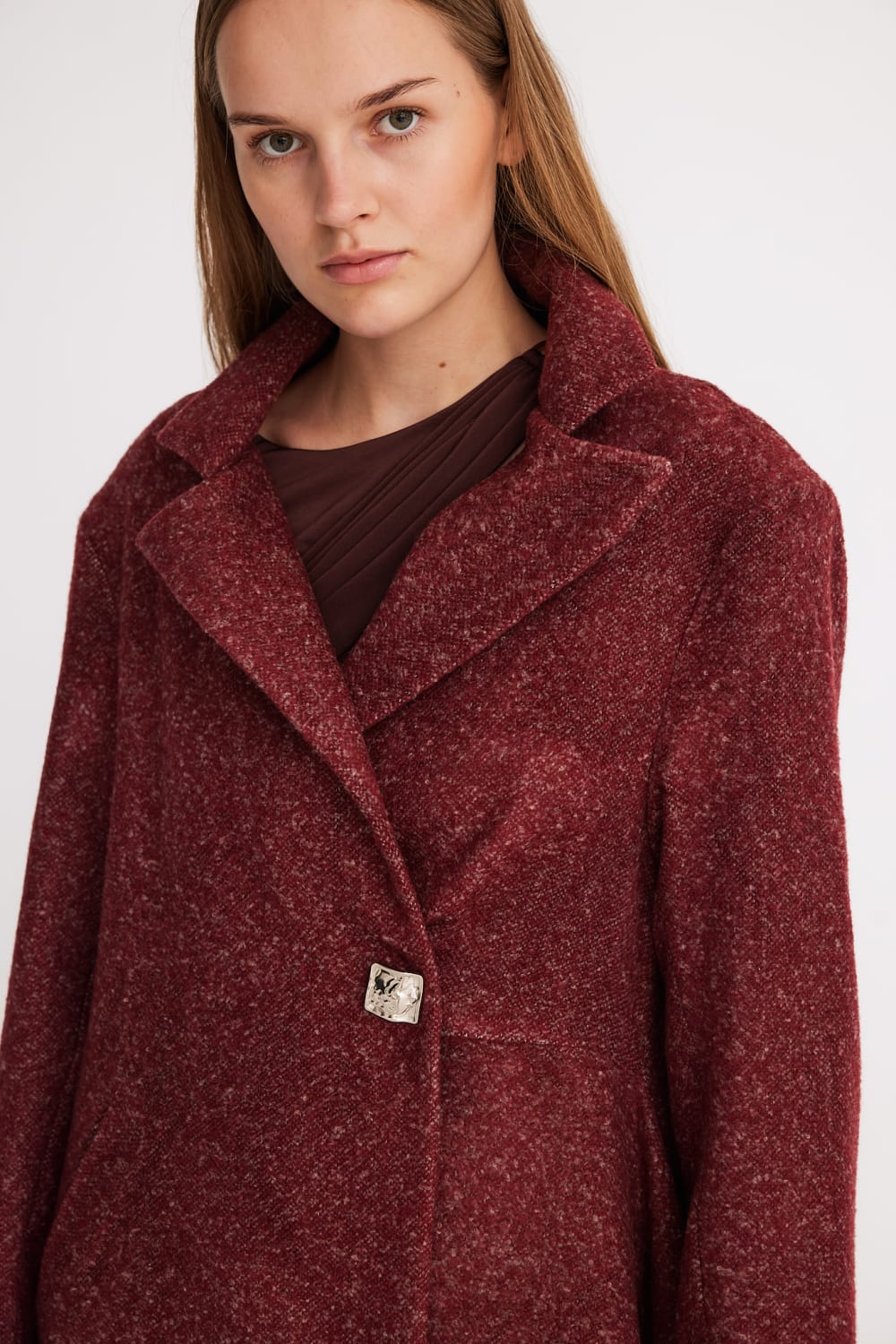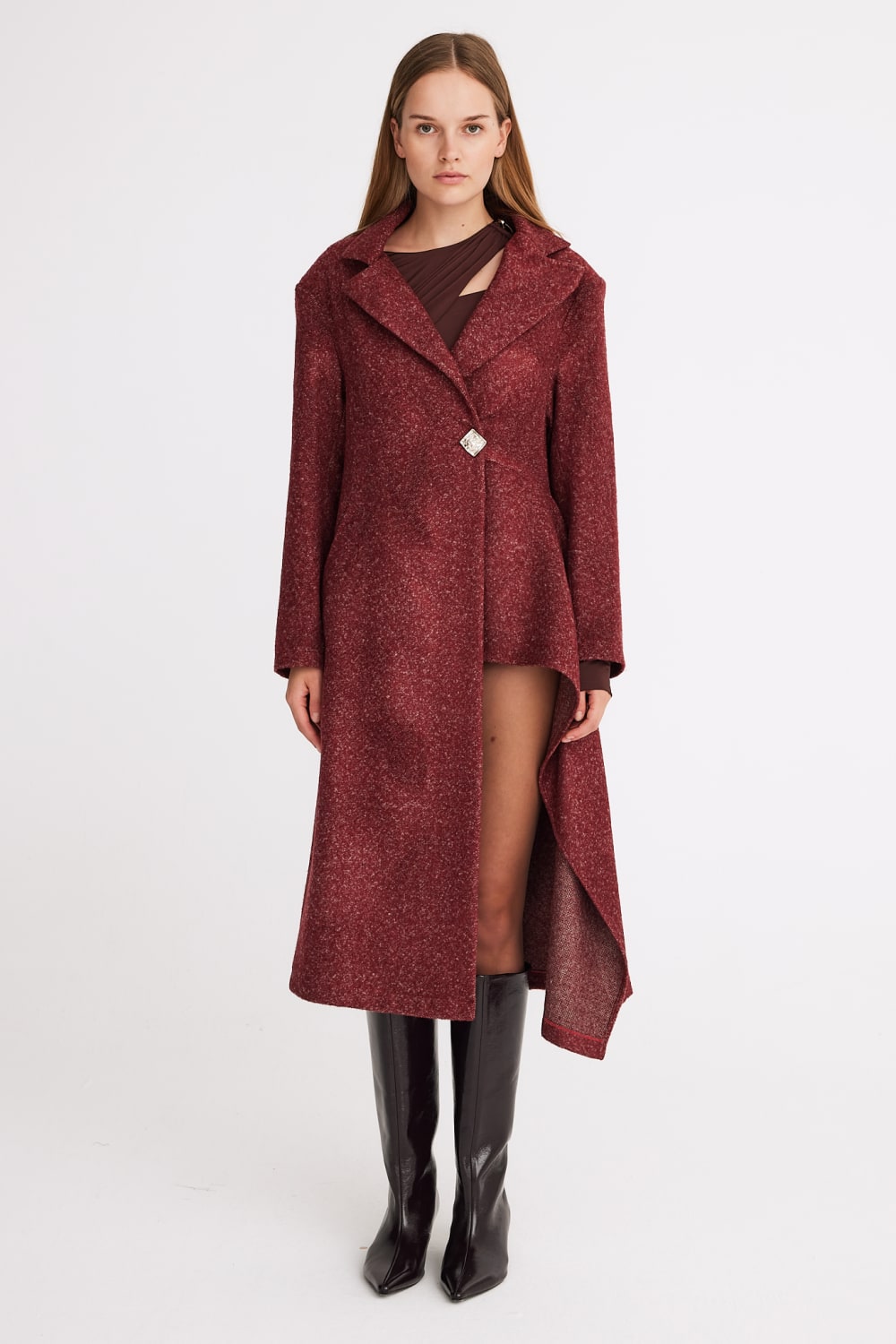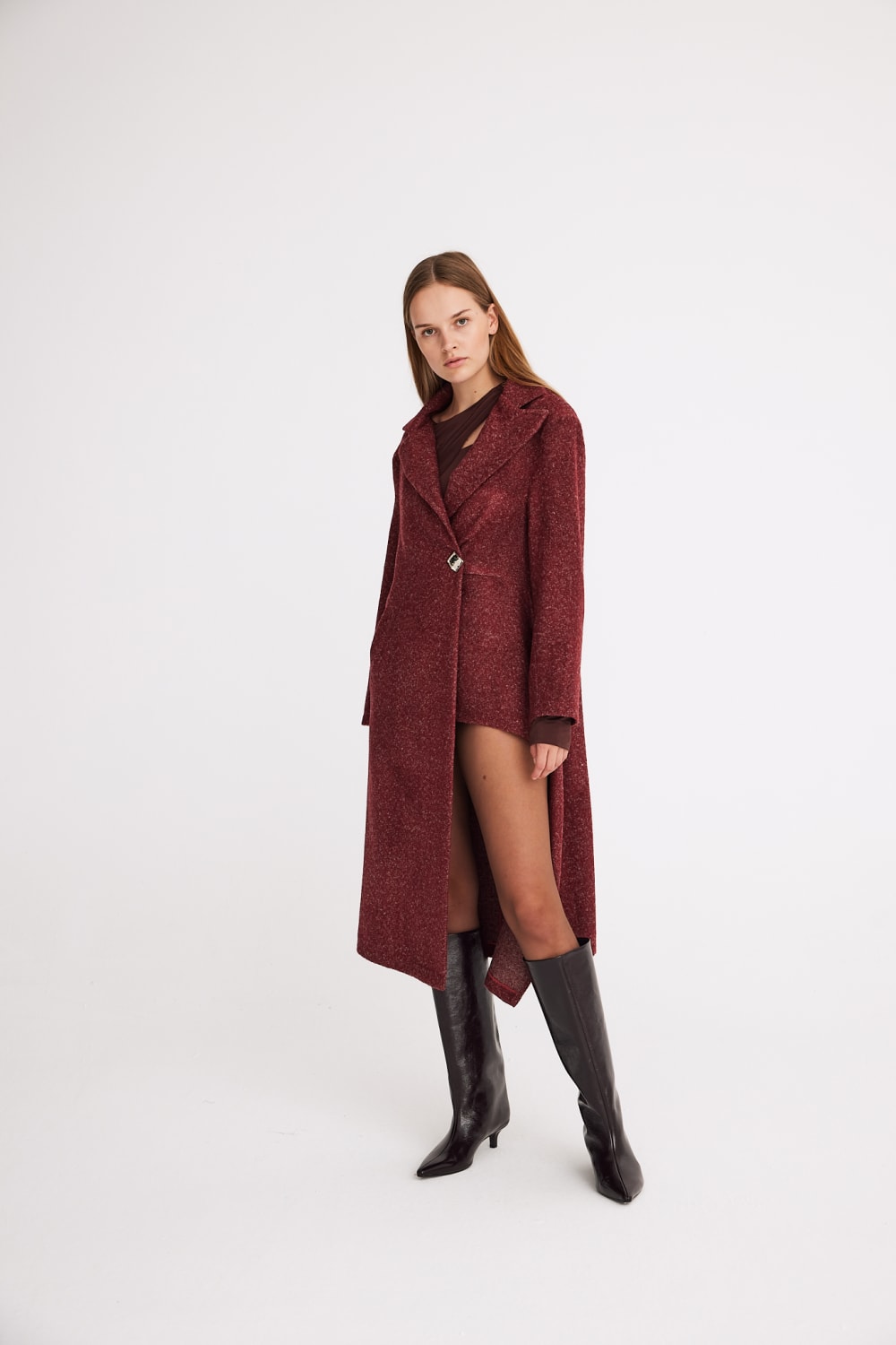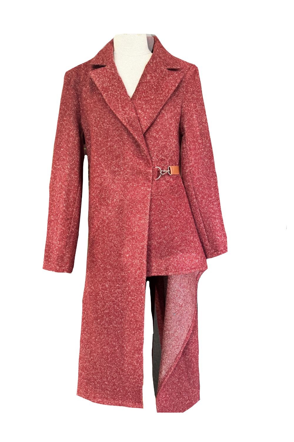Bordo-gri kırçıllı %40 yün karışımlı kumaş