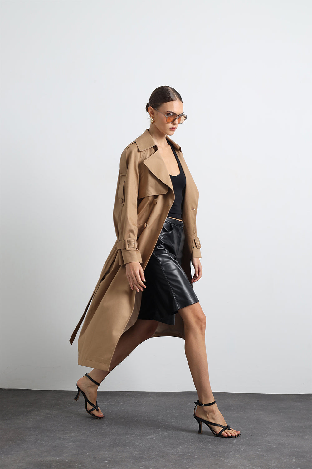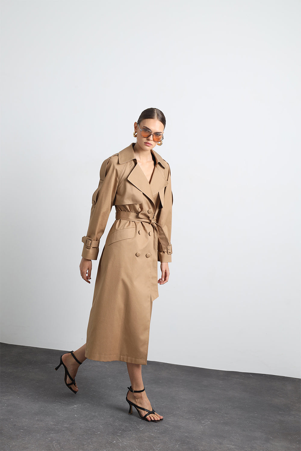 Savrin Camel Kuşaklı Apoletli Maxi Trençkot, şık, zarif ve fonksiyonel tasarımıyla her mevsim şıklığınızı tamamlar.