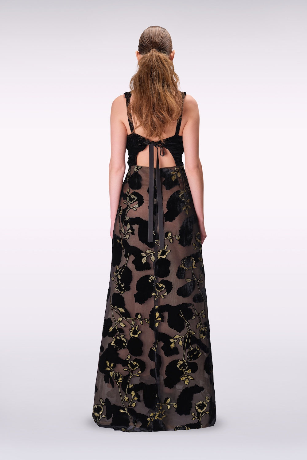 - Transparan simli iplik detaylı renkli ipek kadife etek