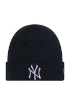 Gorro esencial de la Liga de los Yankees de Nueva York Logotipo del equipo en el frente Bandera New Age bordada en el lado izquierdo Corona tejida deformada 100% acrílico