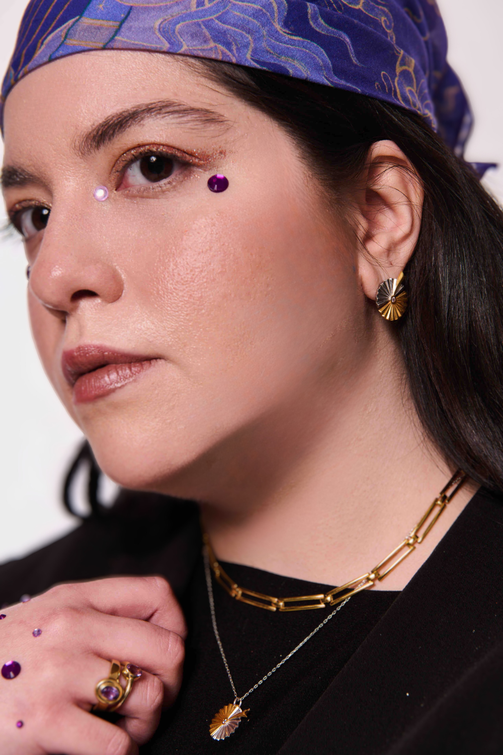 Kuyruklu madalyon üzerinde beyaz zirkon taş