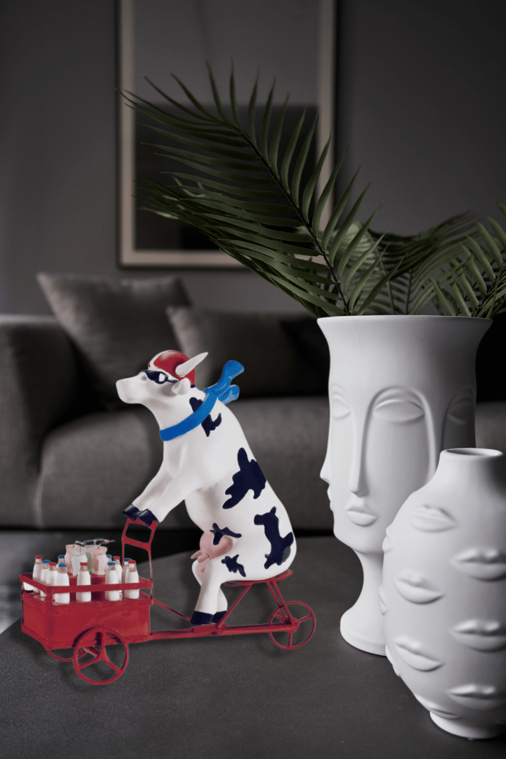 Lait Triporteur ( Extra Large )- Cow Parade El Yapımı Dekoratif İnek Figürü