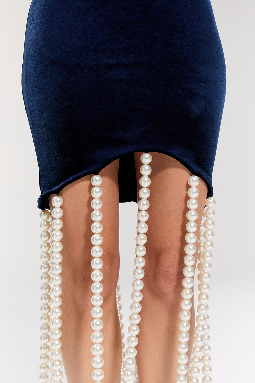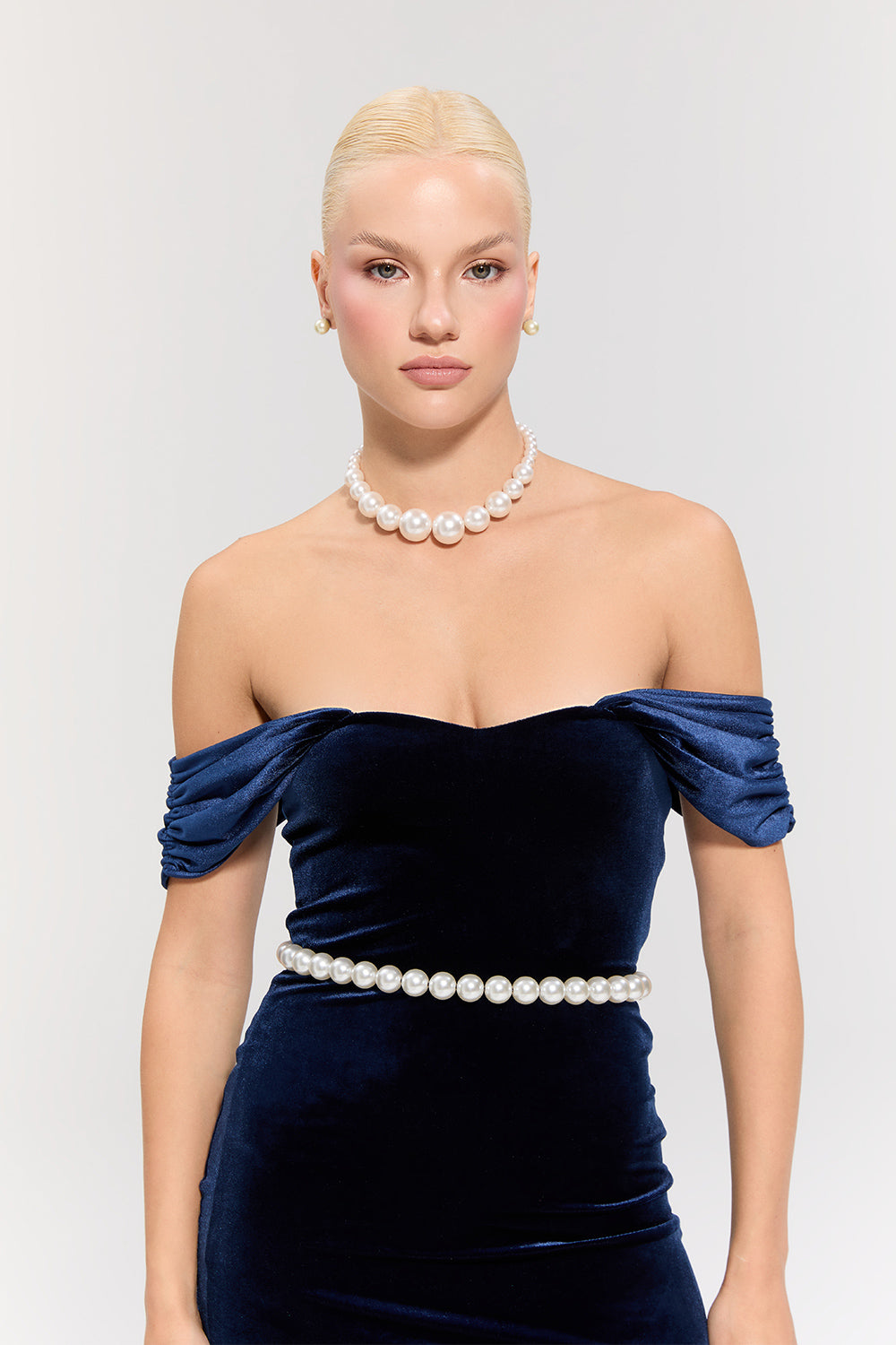 - Etek uçlarındaki inci detayları zarif bir dokunuş ekleyerek tasarımı öne çıkarır.