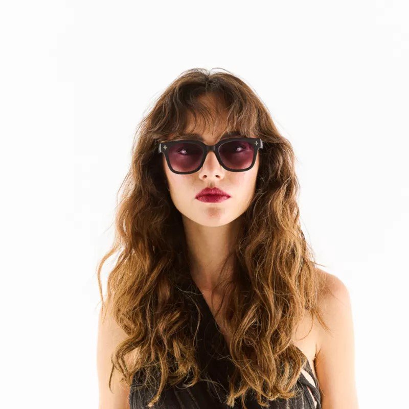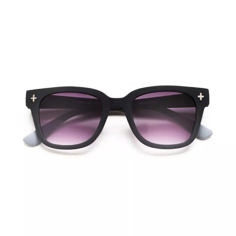 Yumuşak köşeli siyah çerçeveli, koyu renk geçişli merceklere sahip, UV 400 korumalı