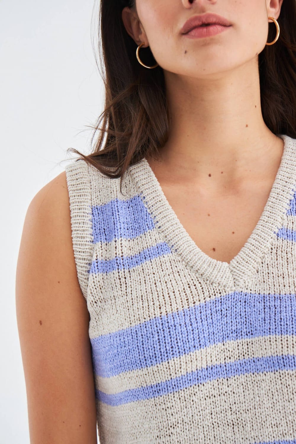 Conjunto de camiseta sin mangas a rayas con cuello en V y pantalones cortos con cinturilla elástica y prendas de punto de verano con cordones Corte cómodo
