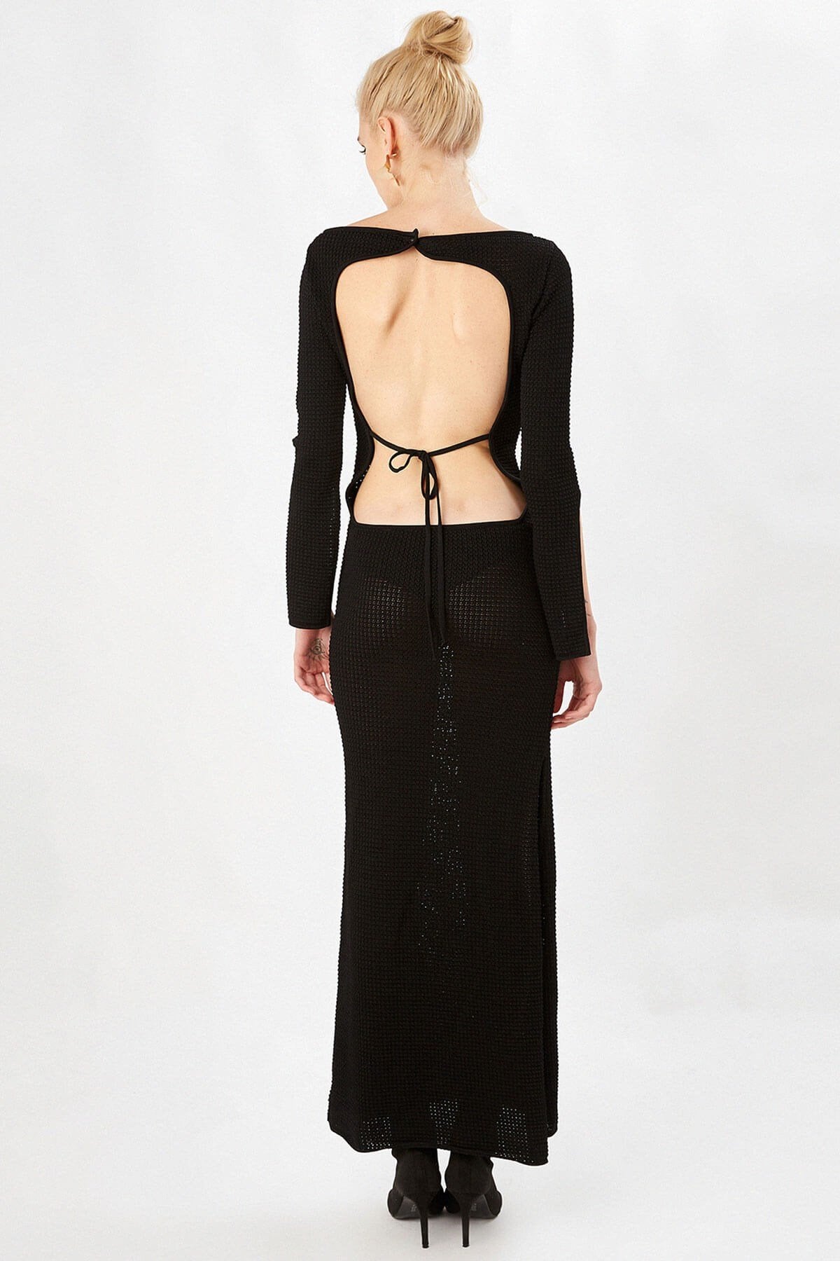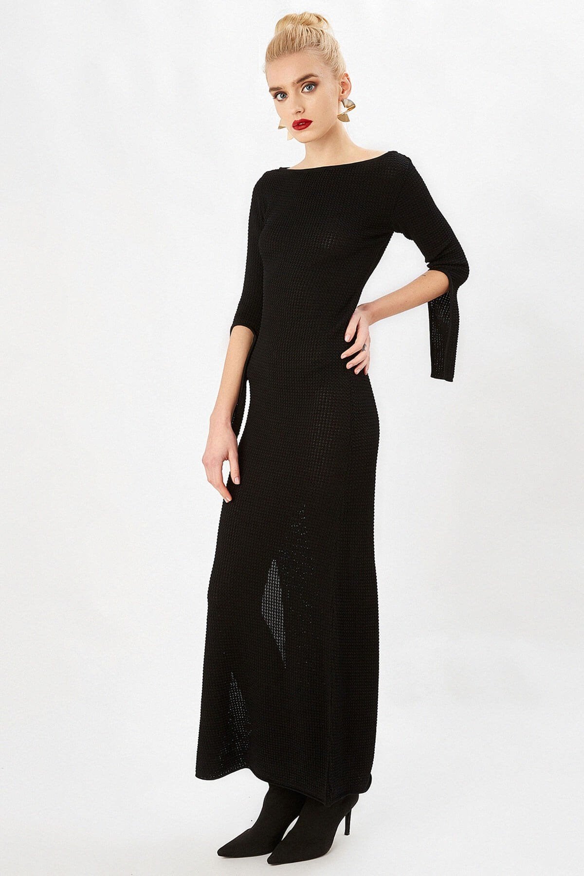 Sırtı Açık Uzun Abiye Elbise Siyah