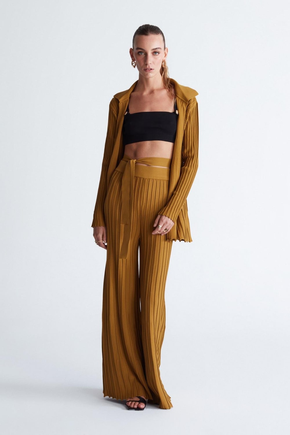 Pantalones Viola Pantalones De Punto De Punto Acanalado Con Cintura Elástica Para Mujer Oliva