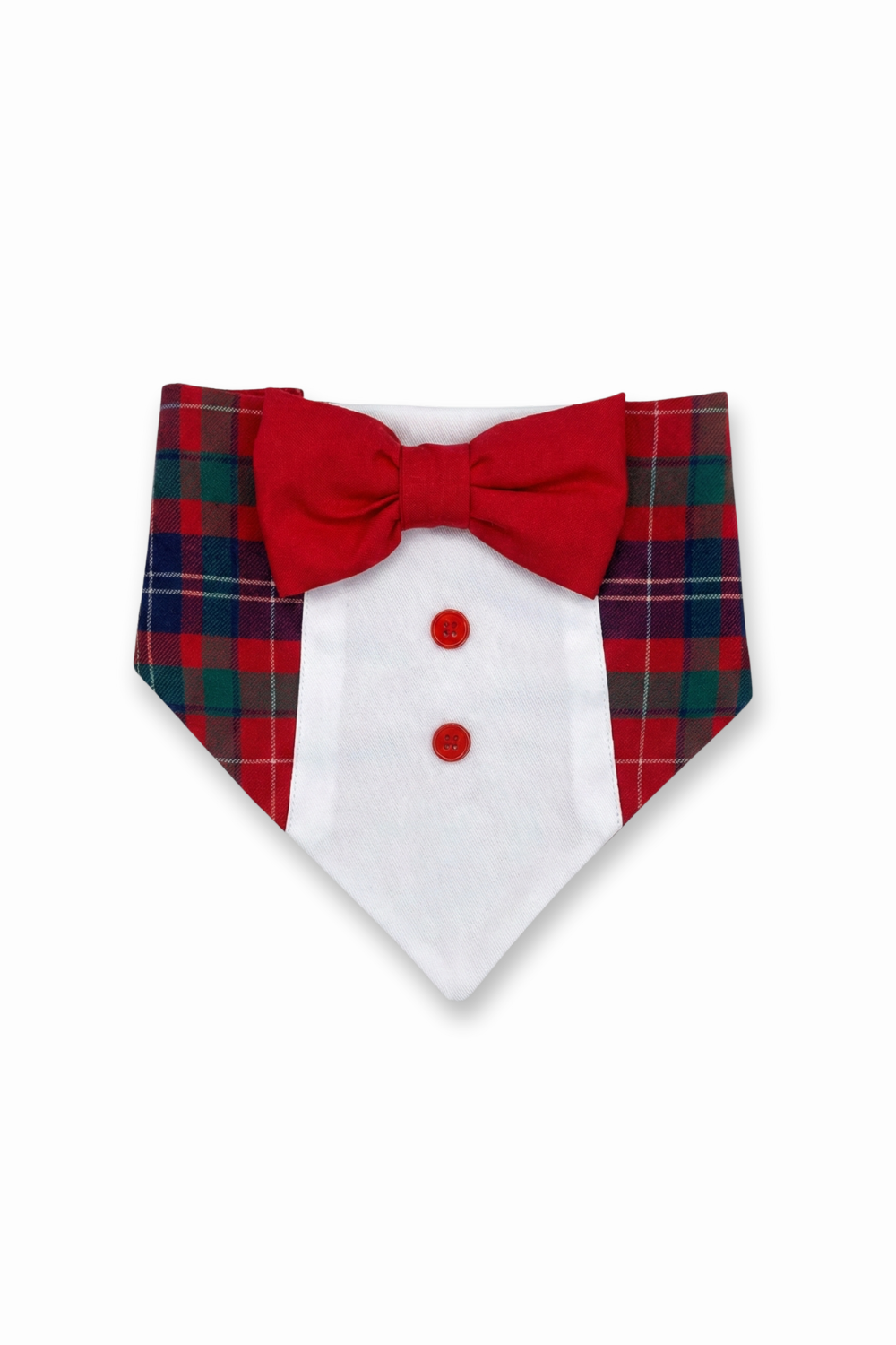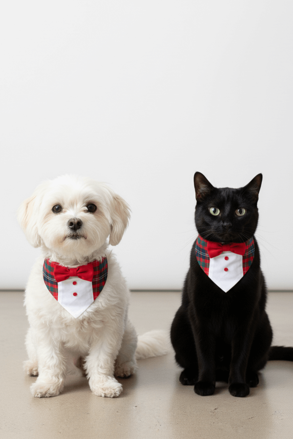 Patily yılbaşı fuları; nostaljik ekose deseni, canlı kırmızısı ve zarif papyonuyla, kedi & köpeğinizin yeni yıl ışıkları altında parlaması için üretildi.