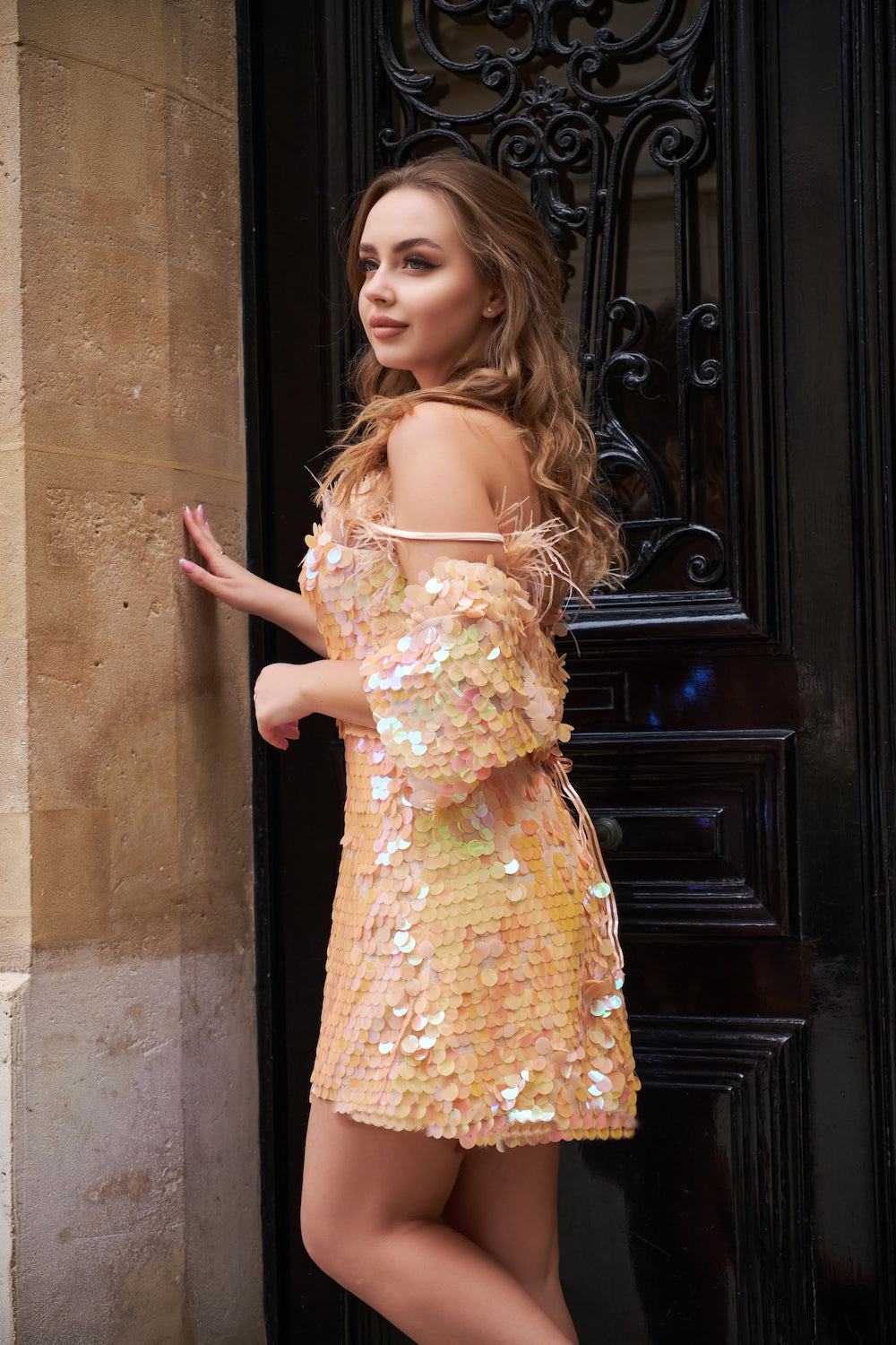 Dore Şeftali Payetli Elbise Ve Bolero Takım Luna