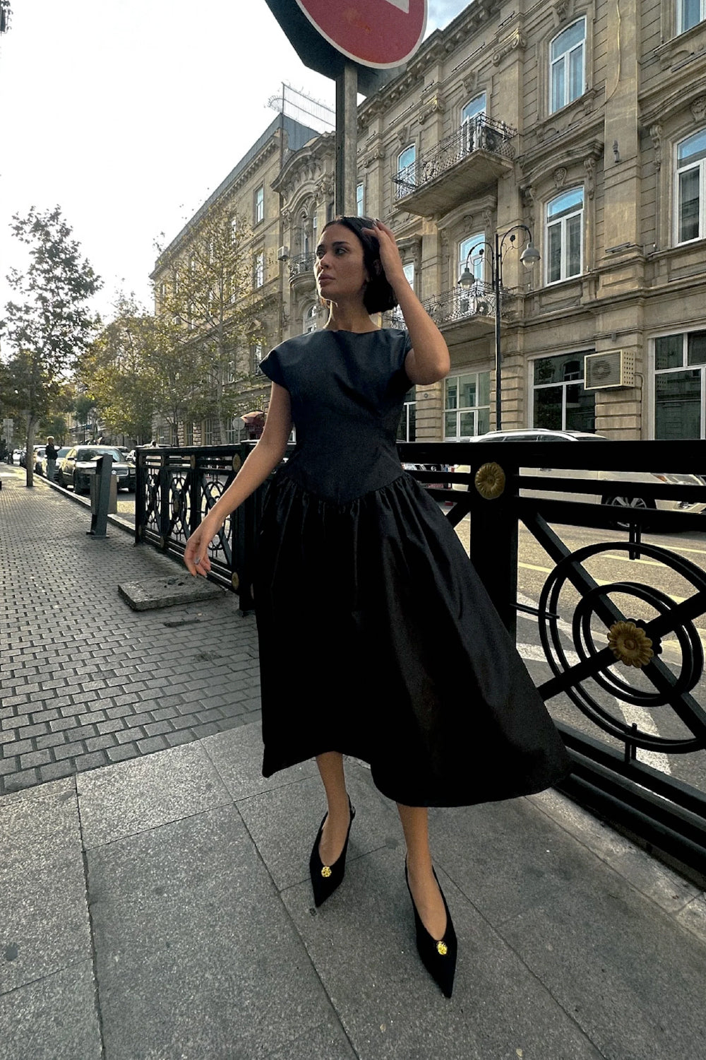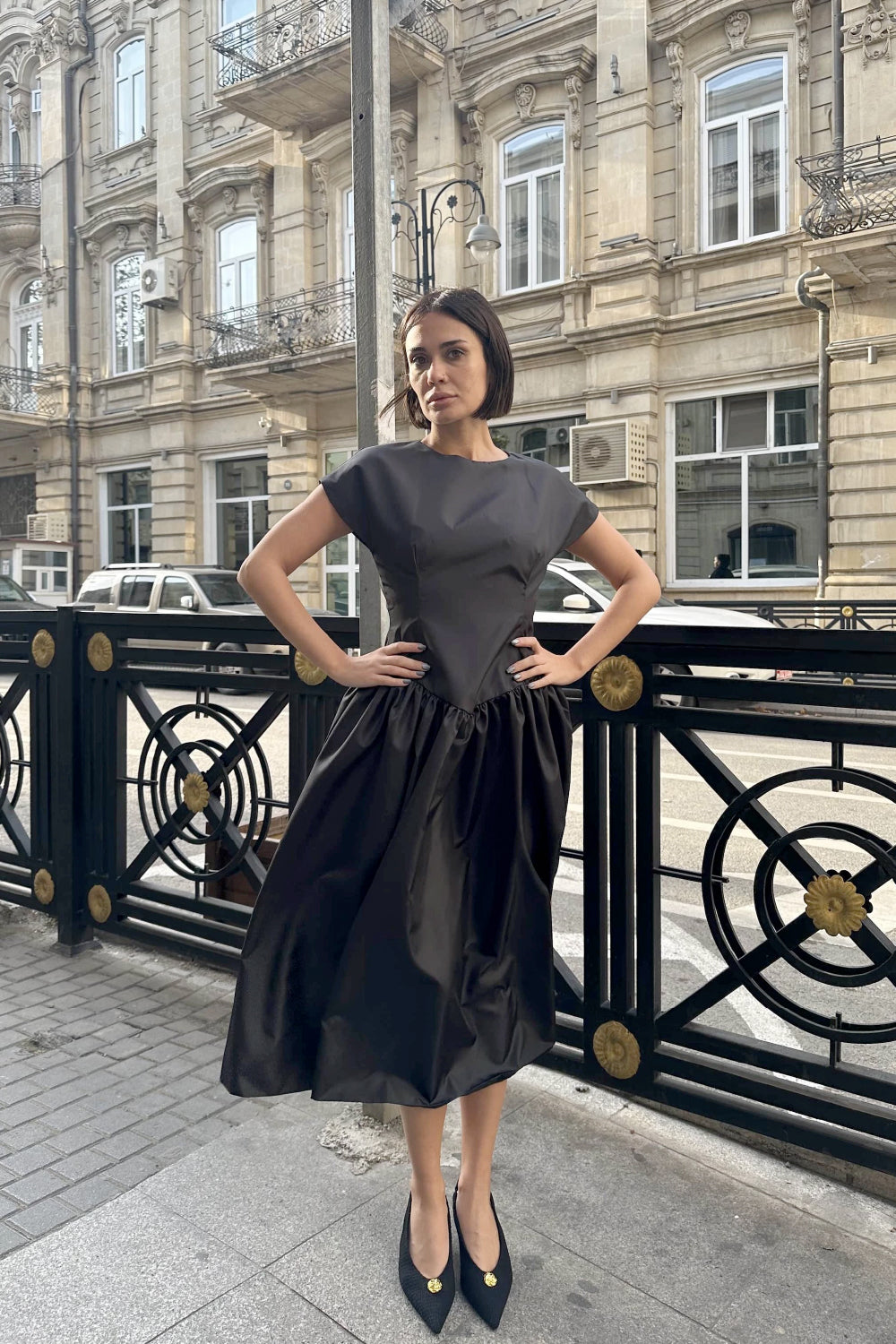 Siyah sırt detaylı elbise.