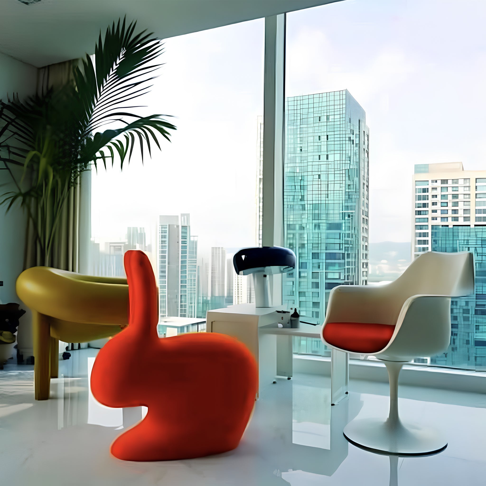 Bu sıra dışı sandalyeye atlayın! Parlak renkli ve cesur şekilli Rabbit saklanmak istemiyor. Stefano Giovannoni tasarımı tavşan sandalyesi, ister kulağa yaslanarak, ister ters yönde üzerine binerek ve ön kolları kulaklarına dayayarak kullanılabilir. Hem iç hem de dış ortamlar için uygundur.
