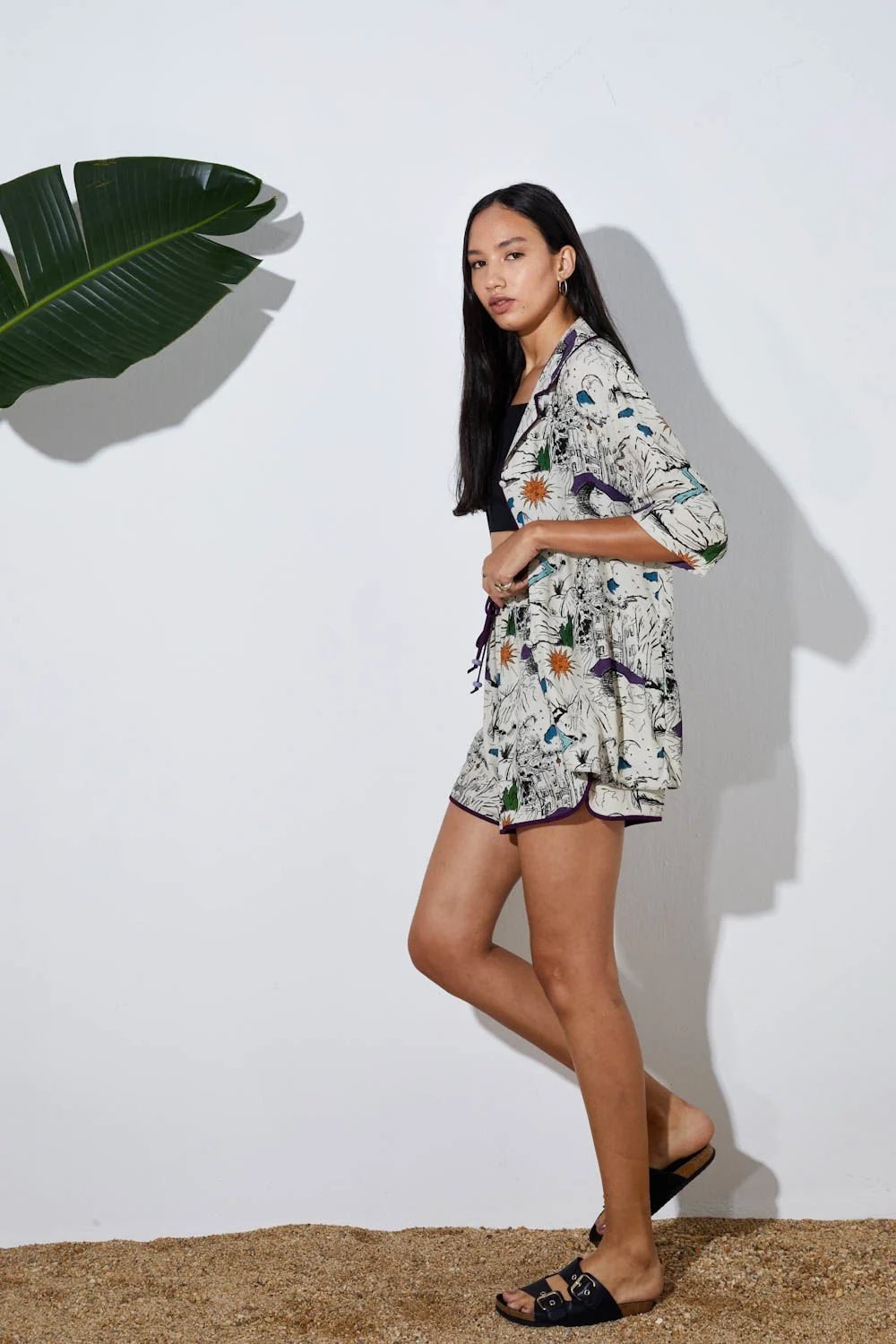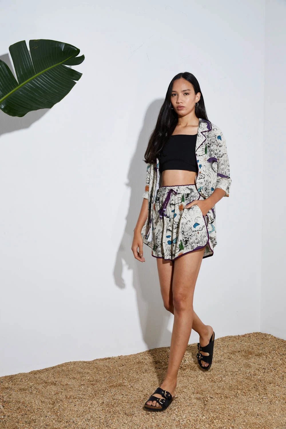 Şortun gold detaylı, inci dokulu düğmesi vardır.Şort hafif bol ve uzun kesimdir.