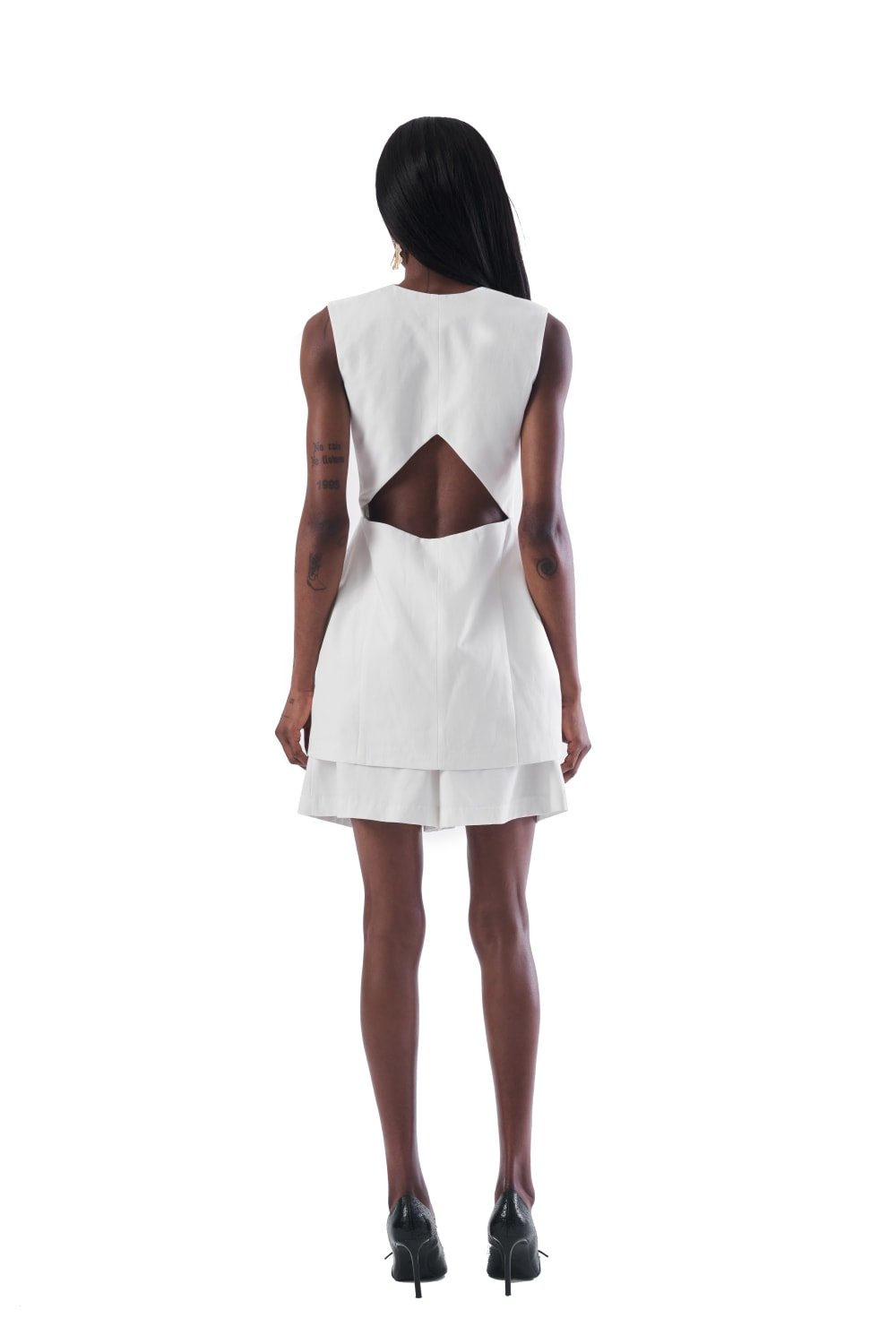 Yeleğin arka belde Cutout dekolte detayı bulunmaktadır.