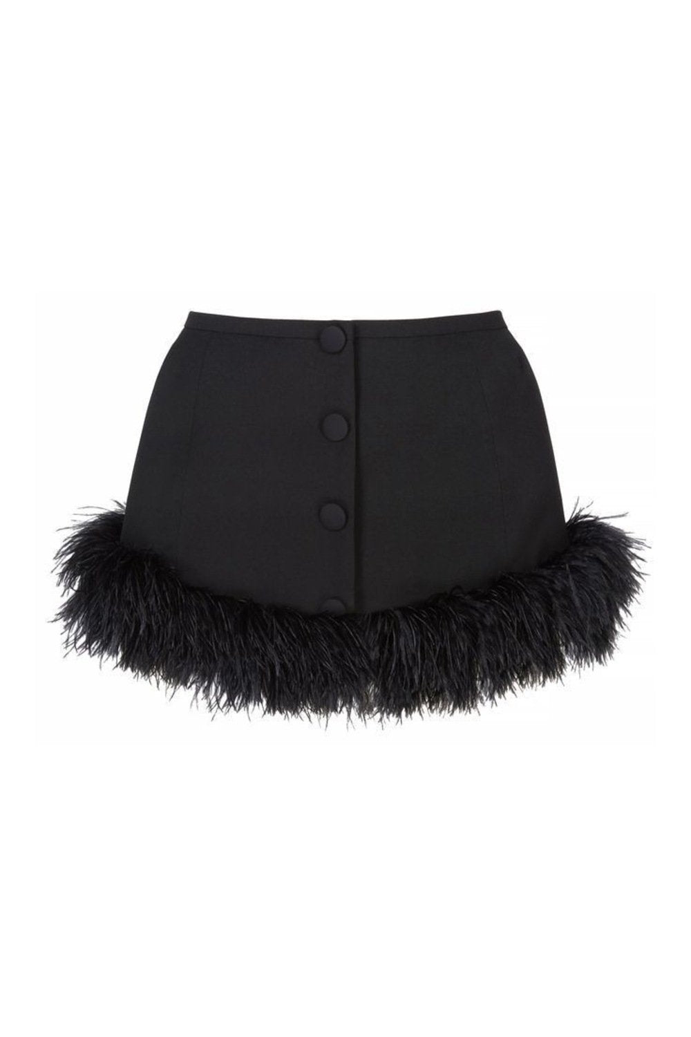 Etek ucu tüy detaylı süs düğmeli mini etek