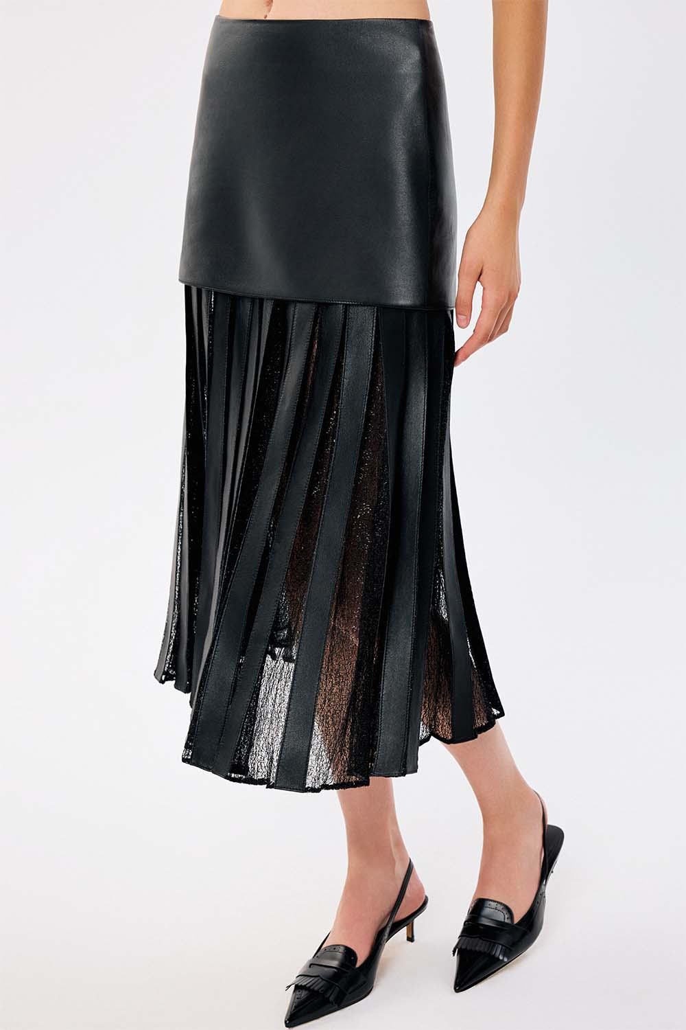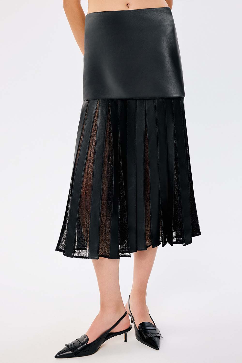 Dakota Faux Leather Skirt blends bold attitude with timeless form. The sleek faux leather texture hugs the waist, while the A line cut offers structure with a subtle sway. Designed to hold its shape and make a statement, it moves with purpose powerful, polished, and unmistakably modern.