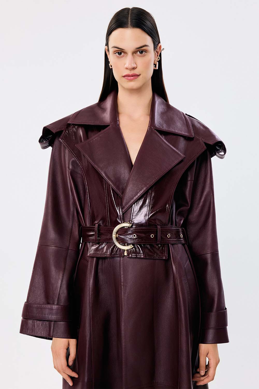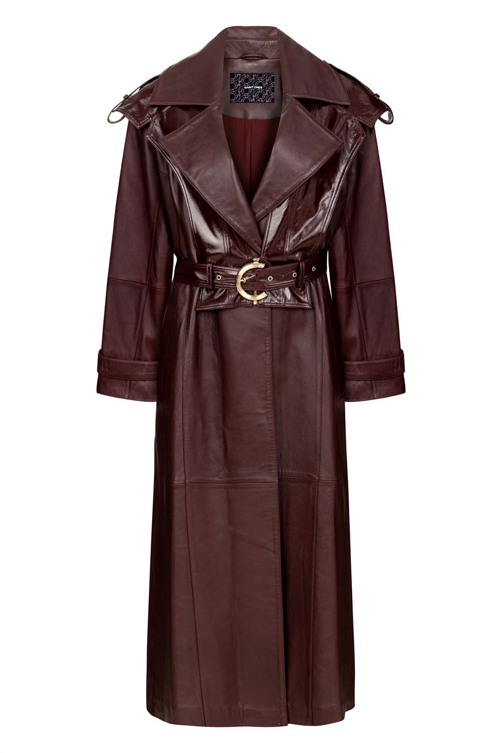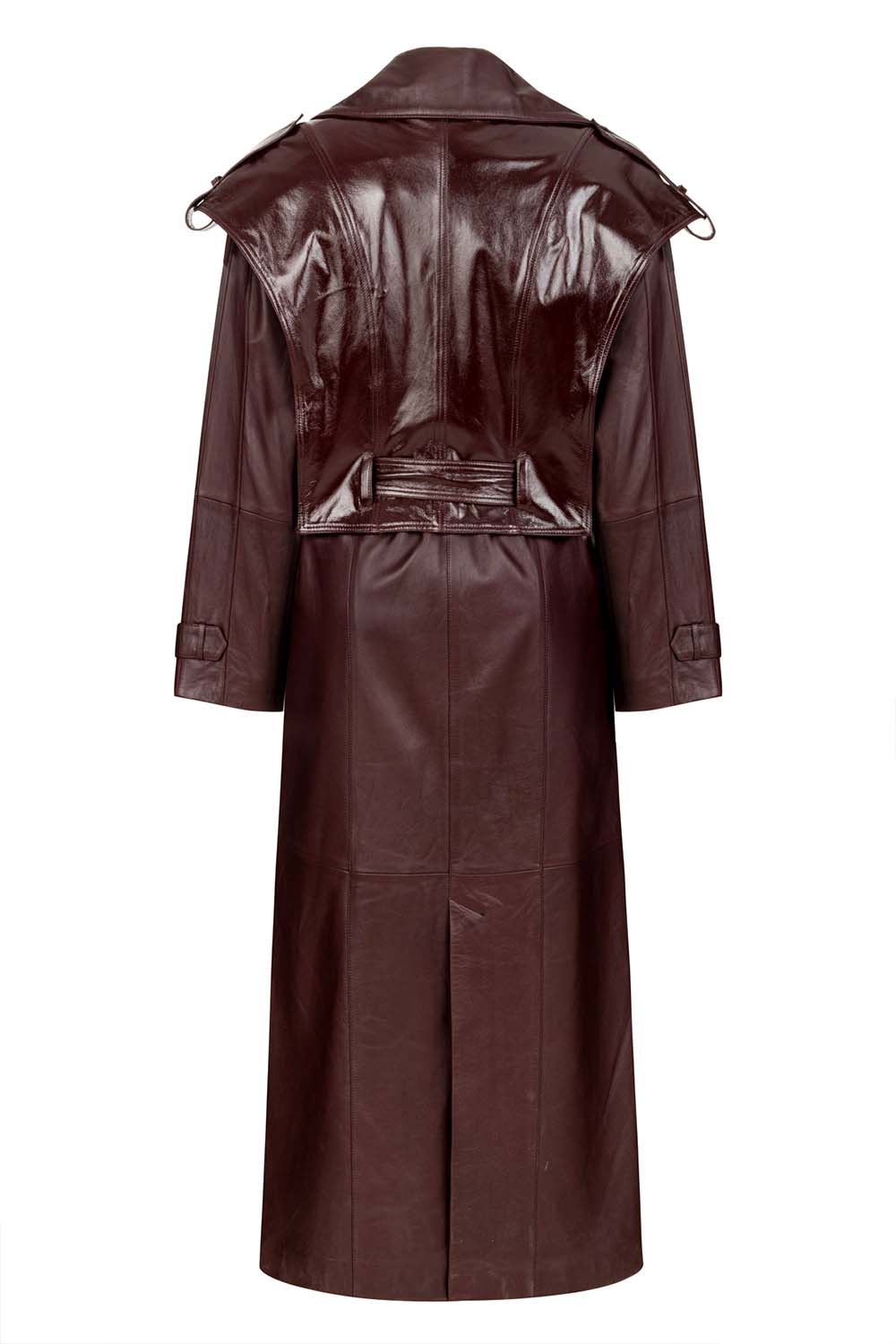 Arden Leather Trench With Arden Patent Bordo Deri Trençkot