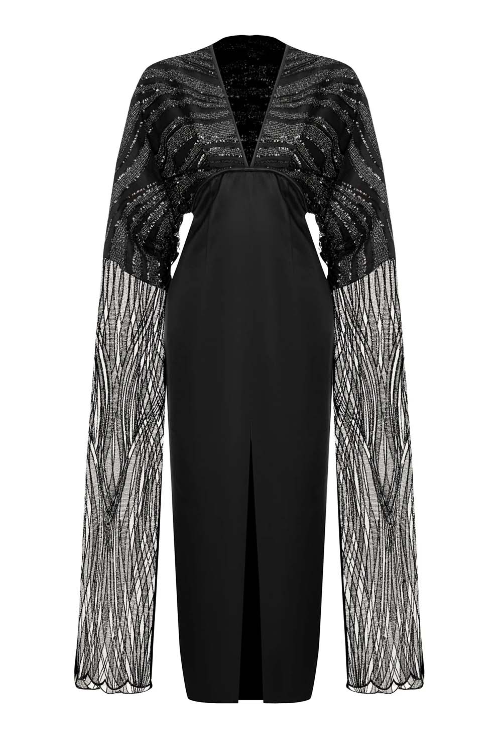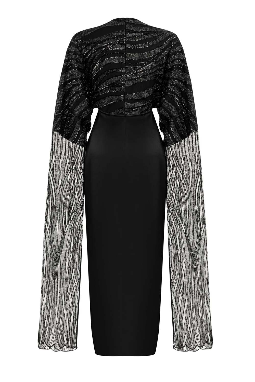 Sculptural elegance meets contemporary allure in the Merope Dress. Designed to highlight the female form, this gown features delicate draping that cascades down the body with grace. The bold neckline and soft metallic shimmer make it a refined yet striking choice for any evening affair.