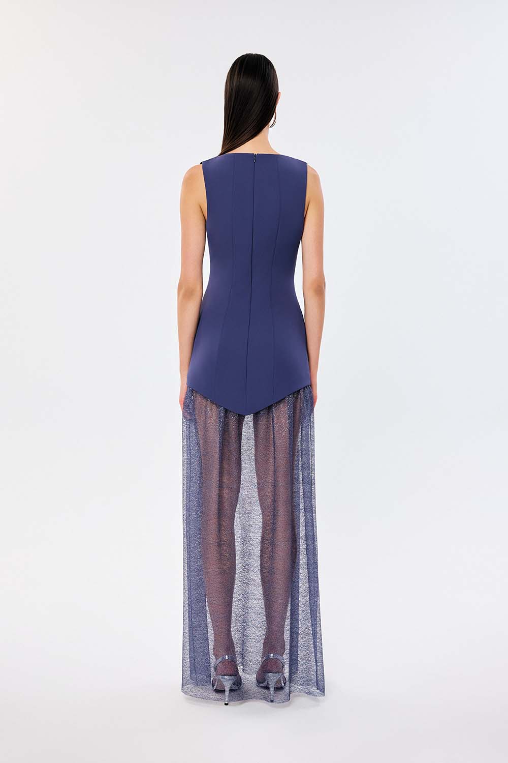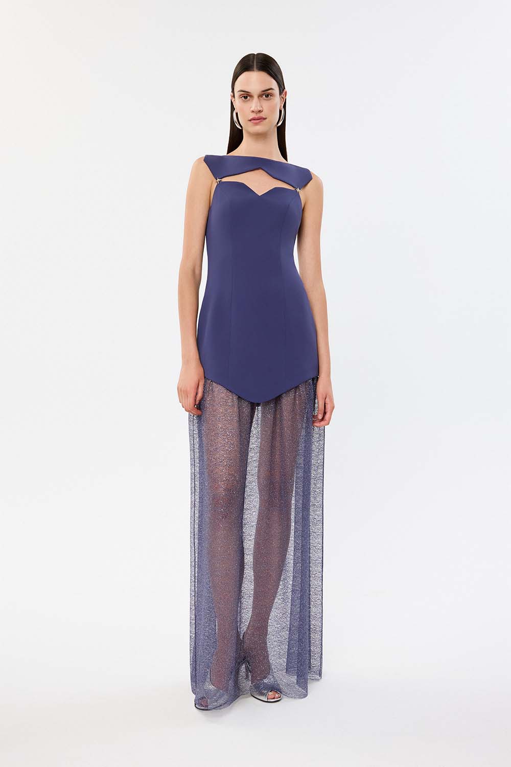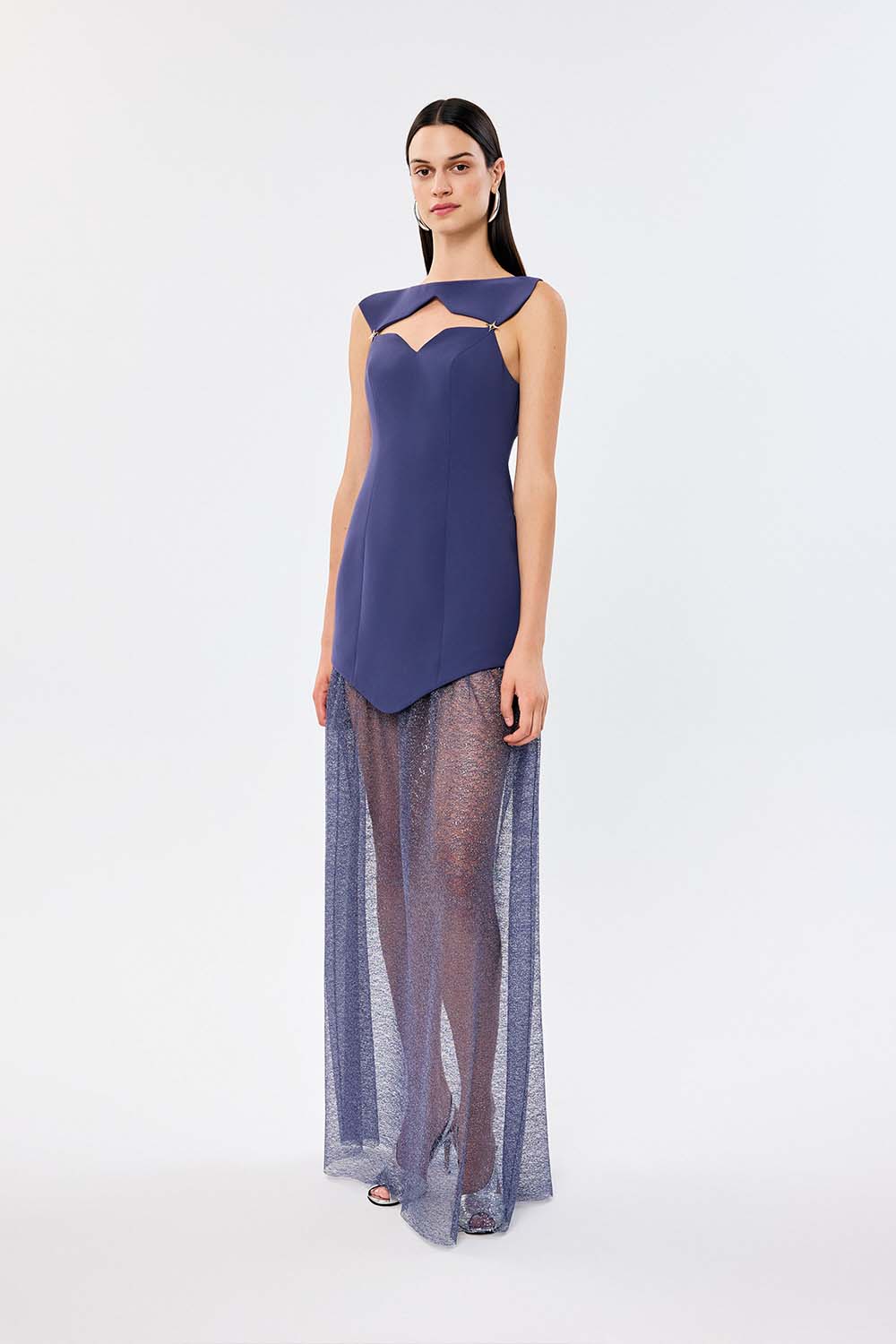 A celestial-inspired masterpiece, the Nefilia Dress is designed for those who embrace drama and elegance in equal measure. The structured bodice provides a sculpted fit, while the ethereal sheer overlay adorned with metallic threads brings an enchanting touch. Wear it with confidence and let the light catch every movement.