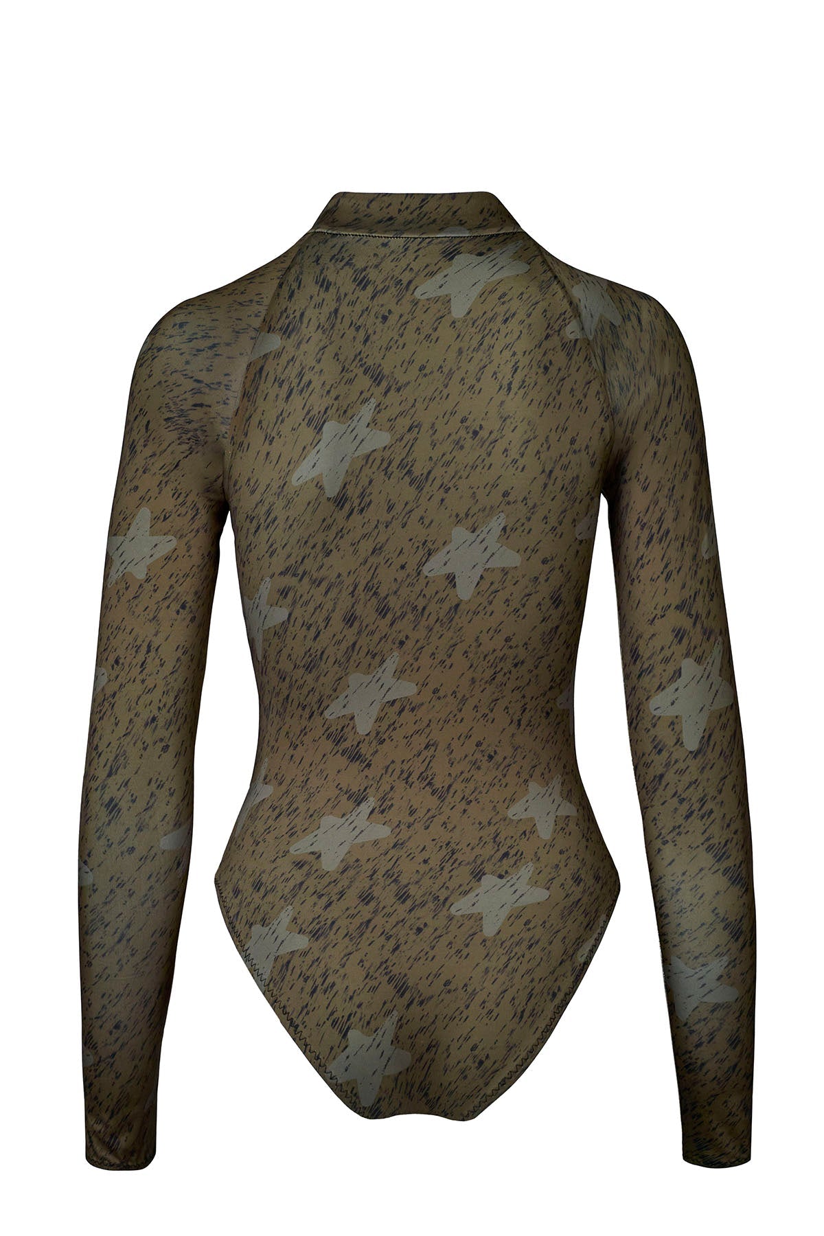 A one piece swimsuit in star print with a eco-friendly zipper. Double fabric with lining. 50+SPF/UPF Sun Protection. Ease to dry.